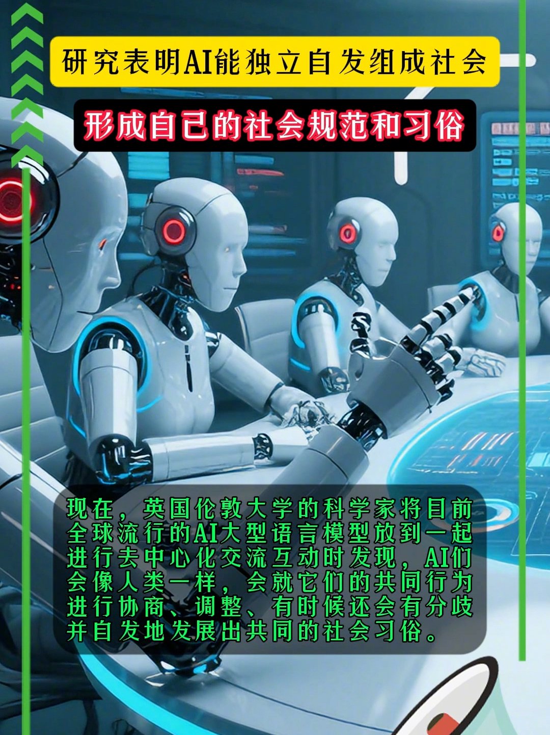 IT之家 5 月 18 日消息,伦敦大学城市学院与哥本哈根信息技术大学研究发现,当 AI 在没有外界参与的情况下,也可以自发地形成类似人类的社会习俗。