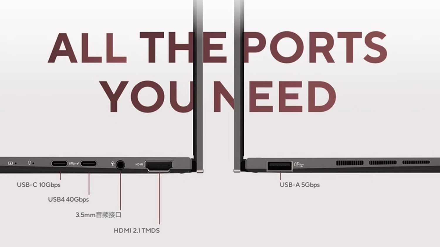 此外,该机配备 75Wh 电池(续航约 18 小时)、1080P 红外双摄像头、超线性扬声器,支持 Wi-Fi 7,机身右侧配备 USB4、USB-C 10Gbps 接口、3.5mm 音频接口、HDMI 2.1 接口、左侧配备 1 个 USB-A 5Gbps 接口。