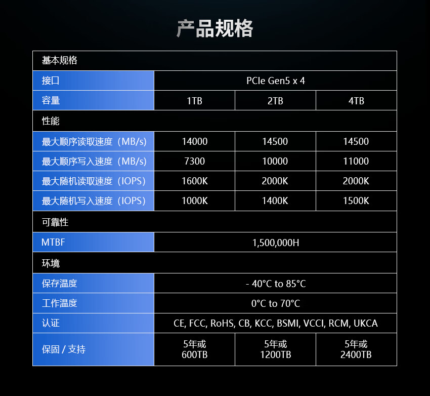 掠夺者存储 GM9 符合 NVMe 2.0 规范,其采用 M.2 2280 单面 PCB 设计,提供 1TB、2TB、4TB 三种容量版本,配备铜箔 + 石墨烯复合散热贴。
