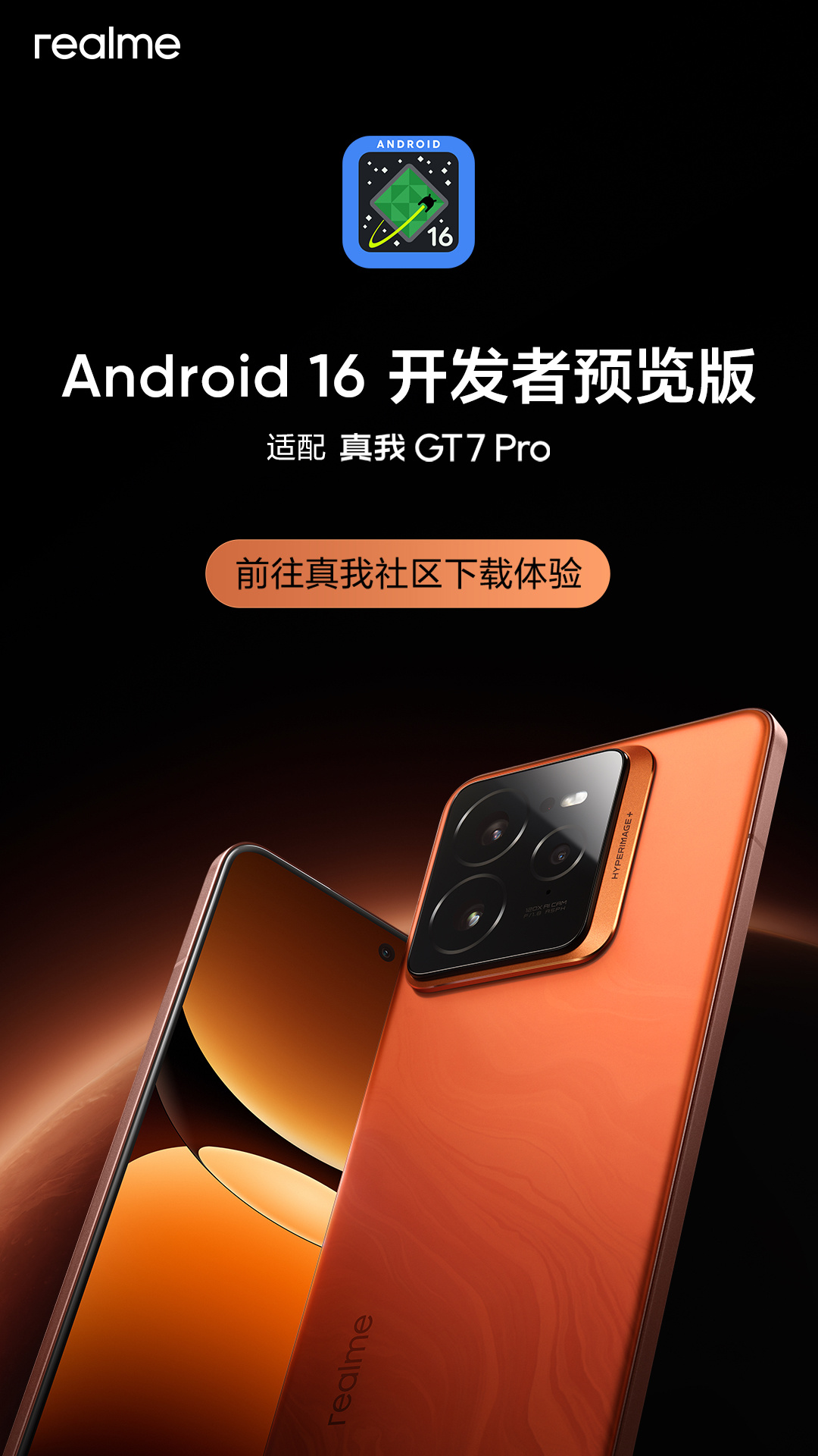 答:Android 16 开发者预览版仅适用于真我GT7 Pro。