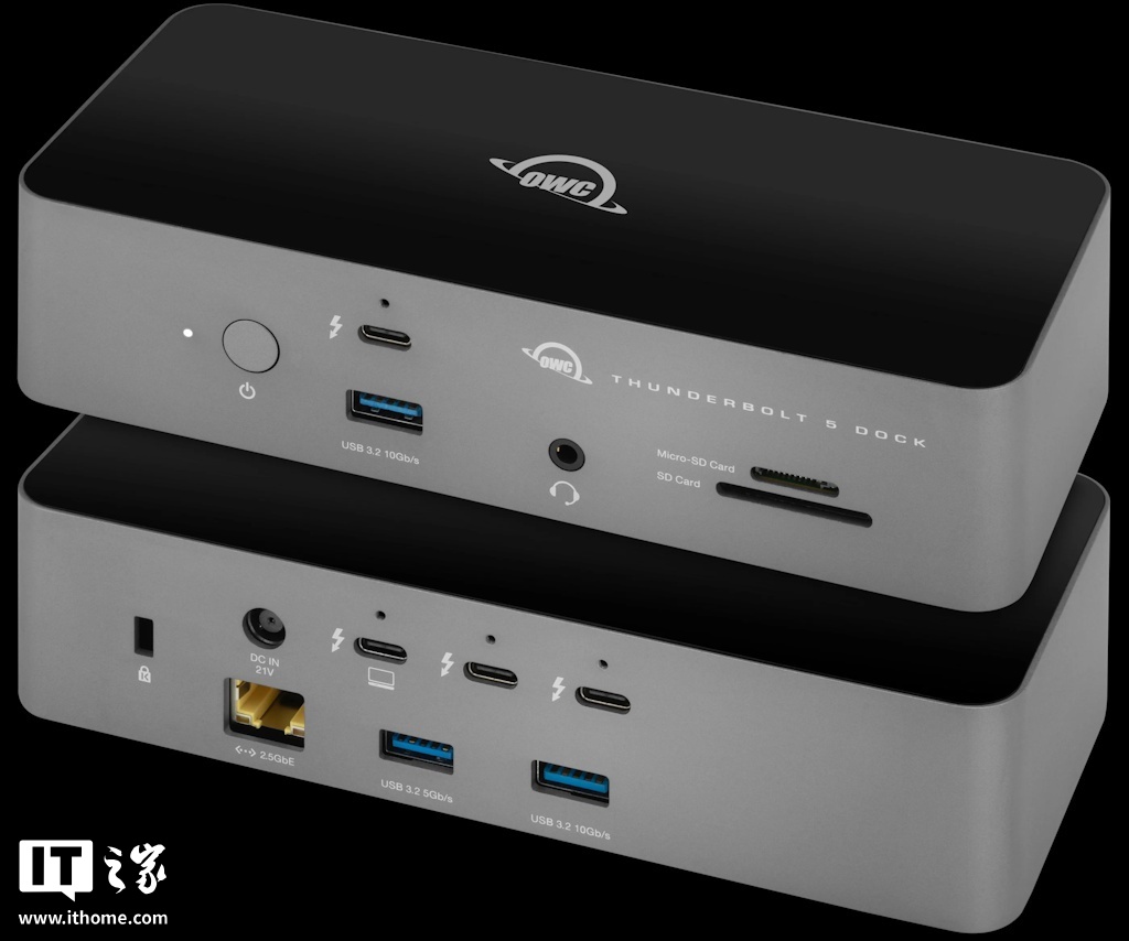 IT之家 5 月 19 日消息,OWC 在 2025 年台北国际电脑展上发布了全新雷电 5 扩展坞,能够为专业人士与游戏玩家提供高速连接、三台 8K 显示器支持以及 140W 供电能力。
