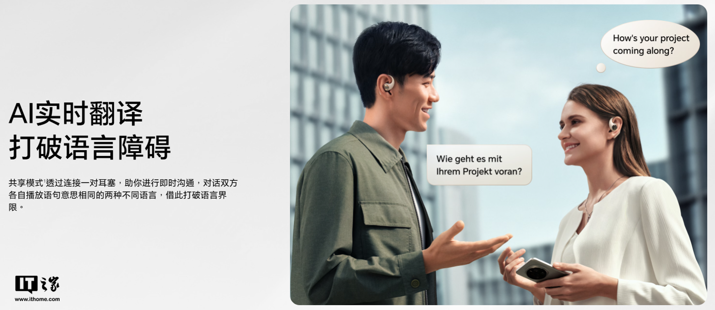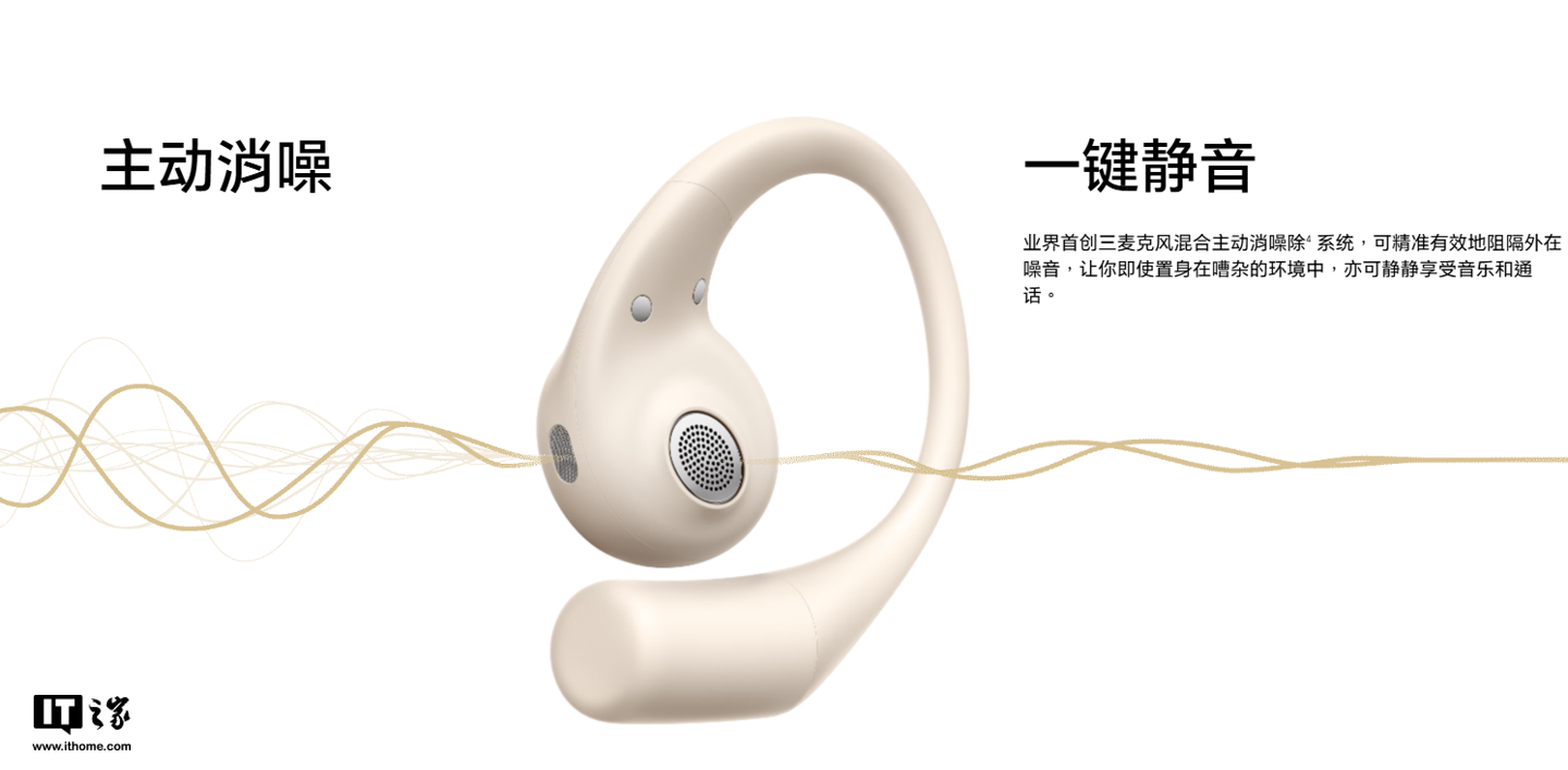 荣耀 Earbuds Open 采用三麦克风混合主动消噪系统,支持主动降噪、通话降噪功能,同时提供 AI 隐私通话、AI 实时翻译功能。耳机还接入 HONOR 信任环,可无缝切换设备播放。