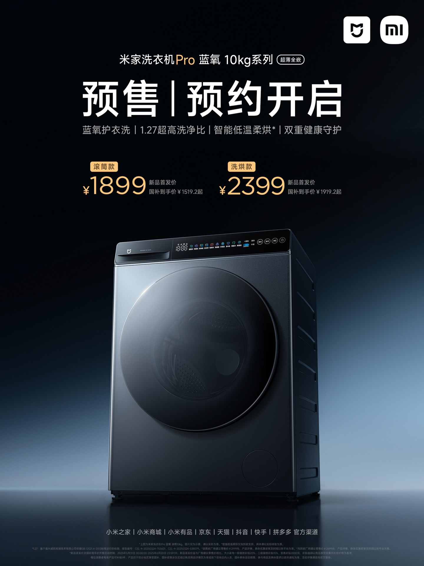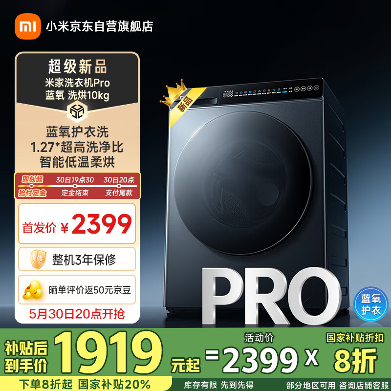 其中滚筒款定价 1899 元,叠加国补后 1519.2 元;洗烘款 2399 元,国补后 1919.2 元。