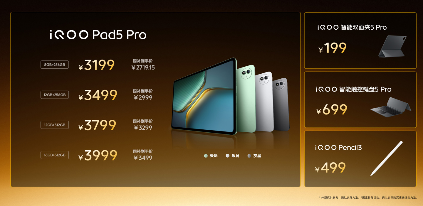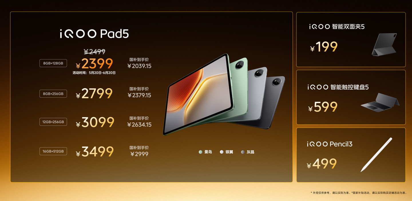 IT之家 5 月 20 日消息,iQOO 今日发布了 iQOO Pad5 和 iQOO Pad5 Pro 两款平板电脑产品,首发价 2399 元起。