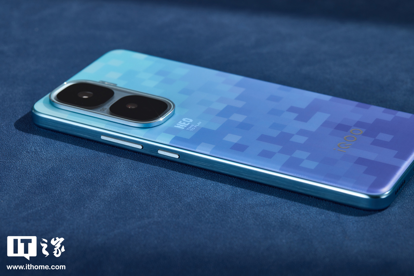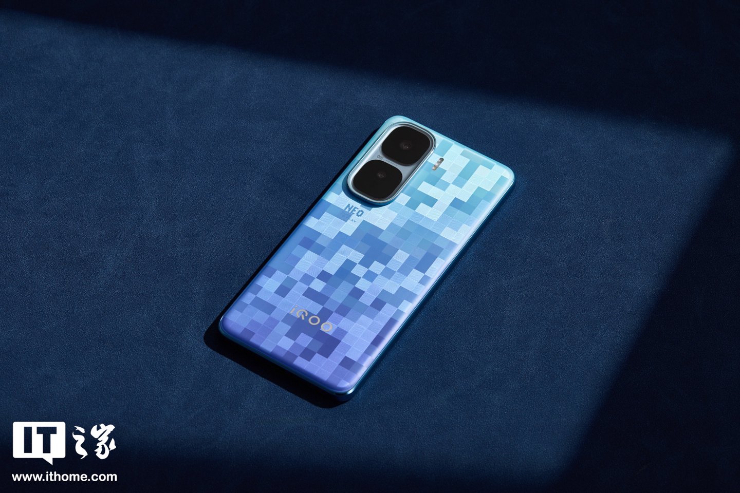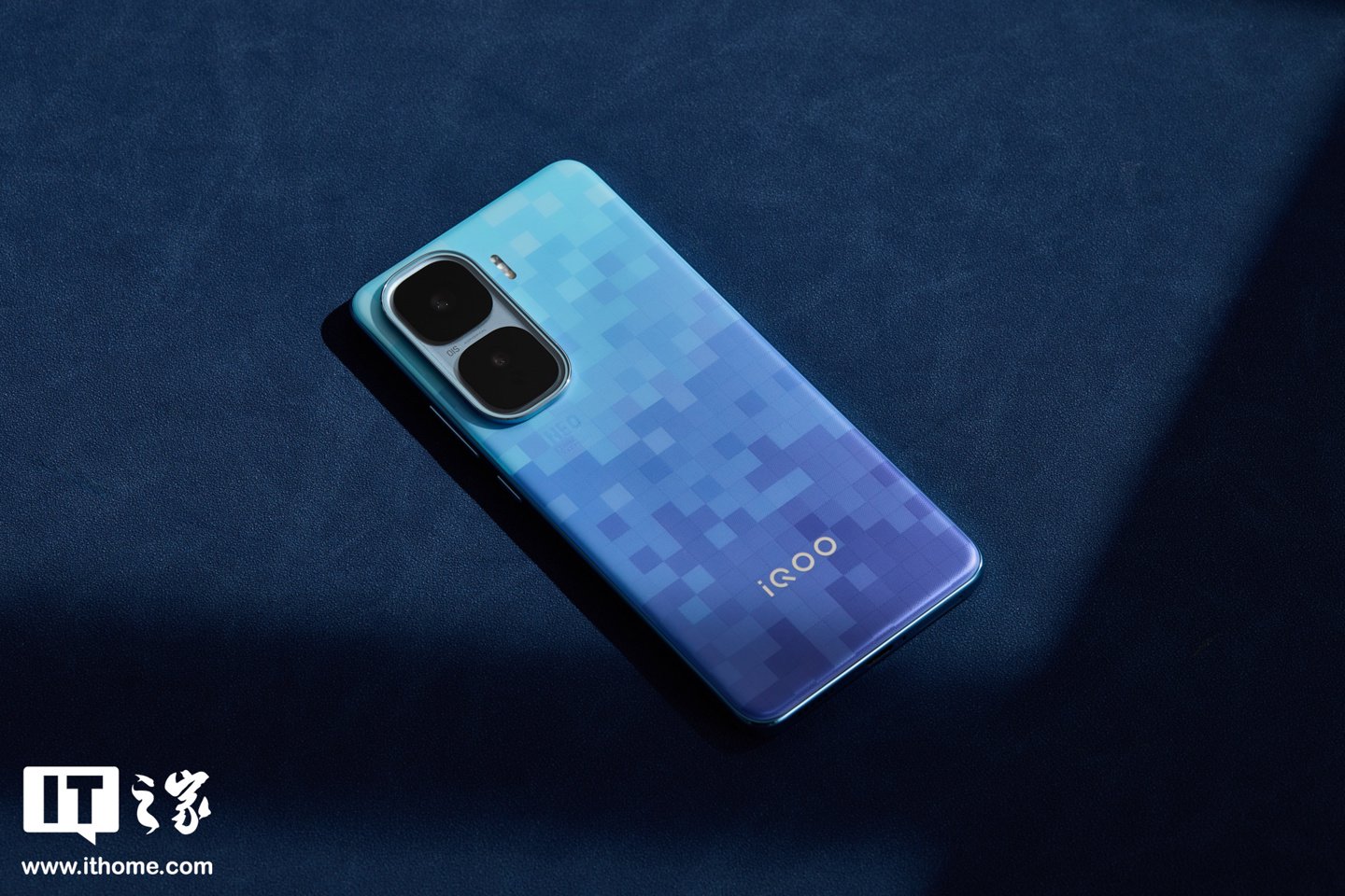 此次IT之家实拍的为「超级像素」配色,这是 iQOO 联合宝马 M Motorsport 带来的全新配色,共同致敬像素游戏文化,后壳颜色会随着光线的变化而变化。此外还提供经典配色「驰光白」、「疾影黑」供选择。