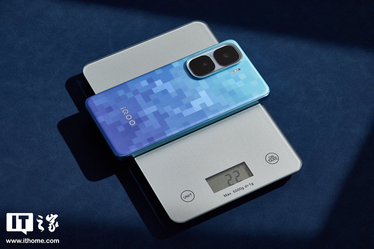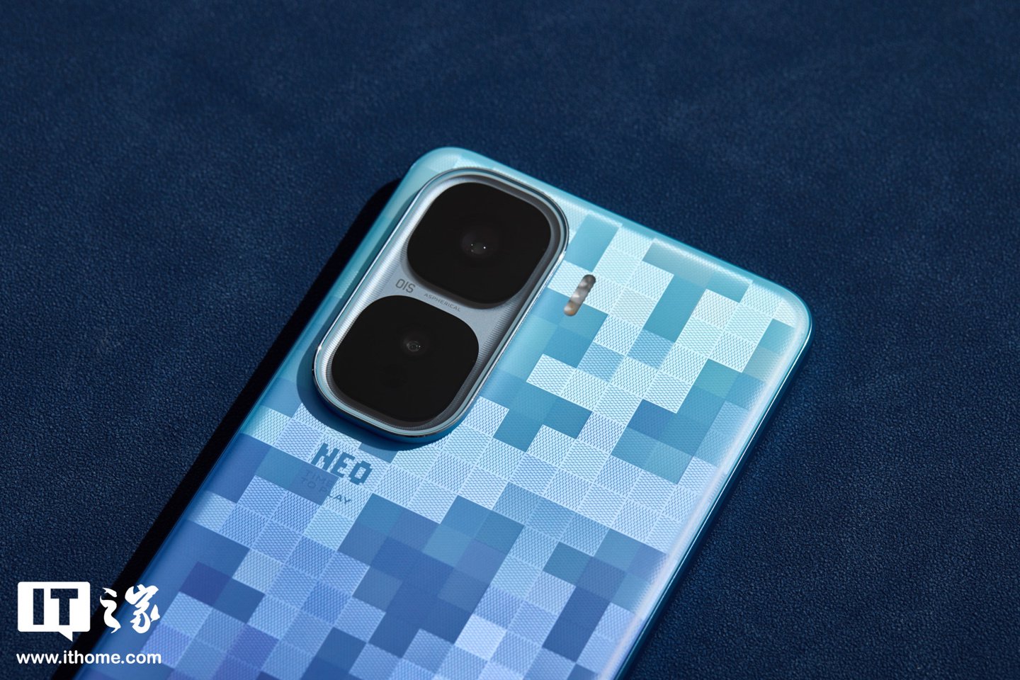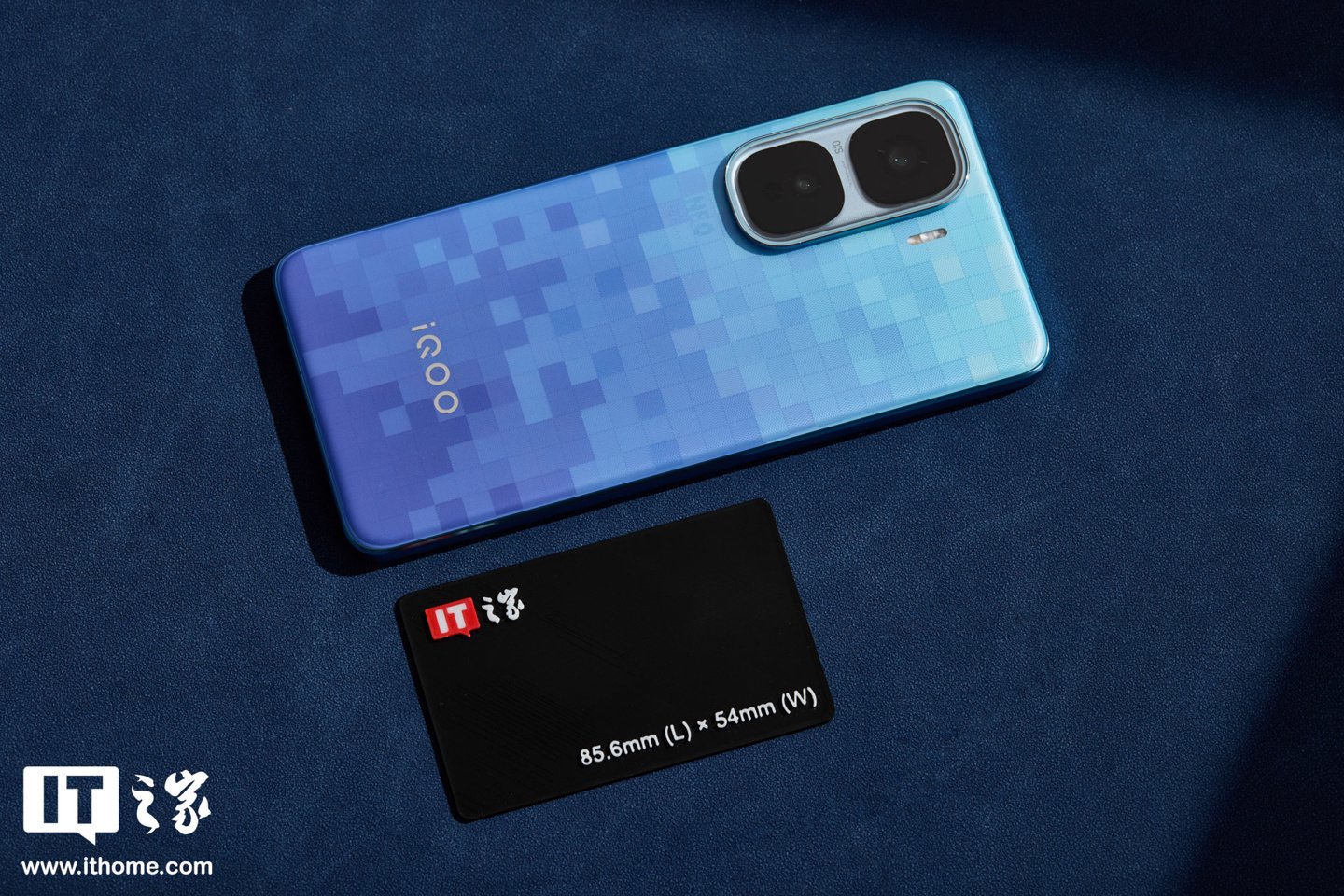 此次IT之家实拍的为「超级像素」配色,这是 iQOO 联合宝马 M Motorsport 带来的全新配色,共同致敬像素游戏文化,后壳颜色会随着光线的变化而变化。此外还提供经典配色「驰光白」、「疾影黑」供选择。