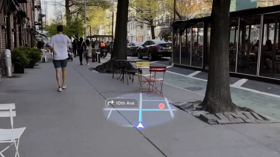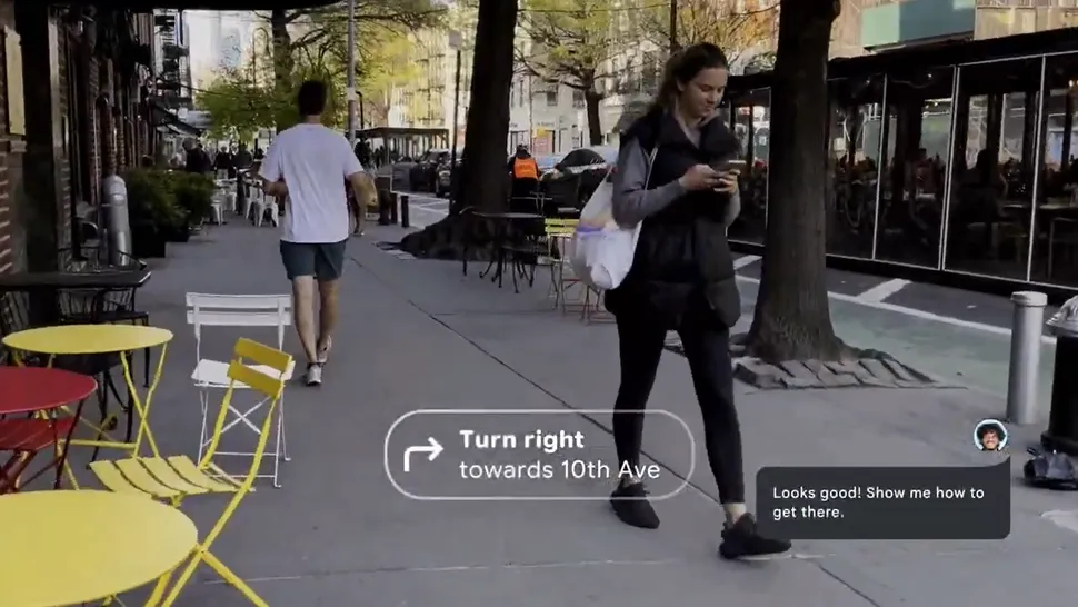 Google Maps 功能尤为亮眼:向前看时显示简洁的箭头和街道名称,低头时无缝切换至实时地图视图。此外,Calendar 提醒和 Messages 弹窗等应用也直观呈现,根据视线方向智能调整显示内容。