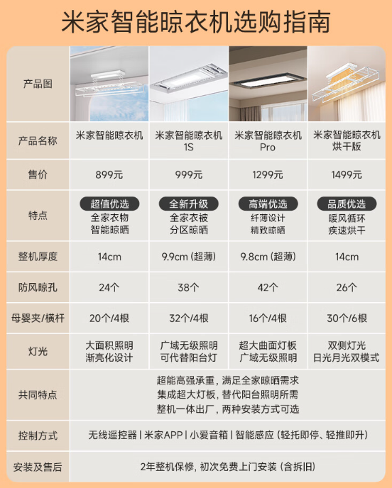 米家智能晾衣机选购指南: