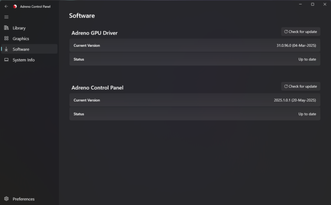 该应用还内置驱动更新功能。用户此前只能依赖设备厂商,或登录高通官网下载测试版驱动;而现在,用户可以通过该应用检查更新,甚至可能选择加入测试版驱动计划,并可以查看附带的更新日志。
