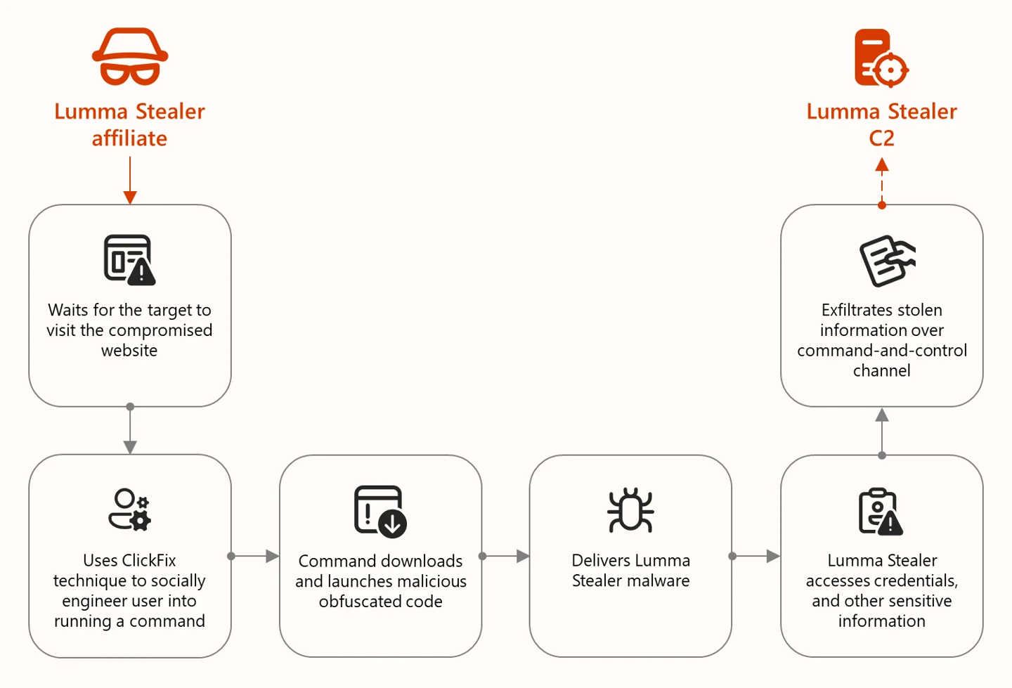 在传播方式上,Lumma 信息窃取恶意软件通过钓鱼邮件、恶意广告(malvertising)、被攻陷网站上的“drive-by downloads”、伪装成合法软件的特洛伊化应用,以及伪造的 CAPTCHA 验证等多种方式传播。