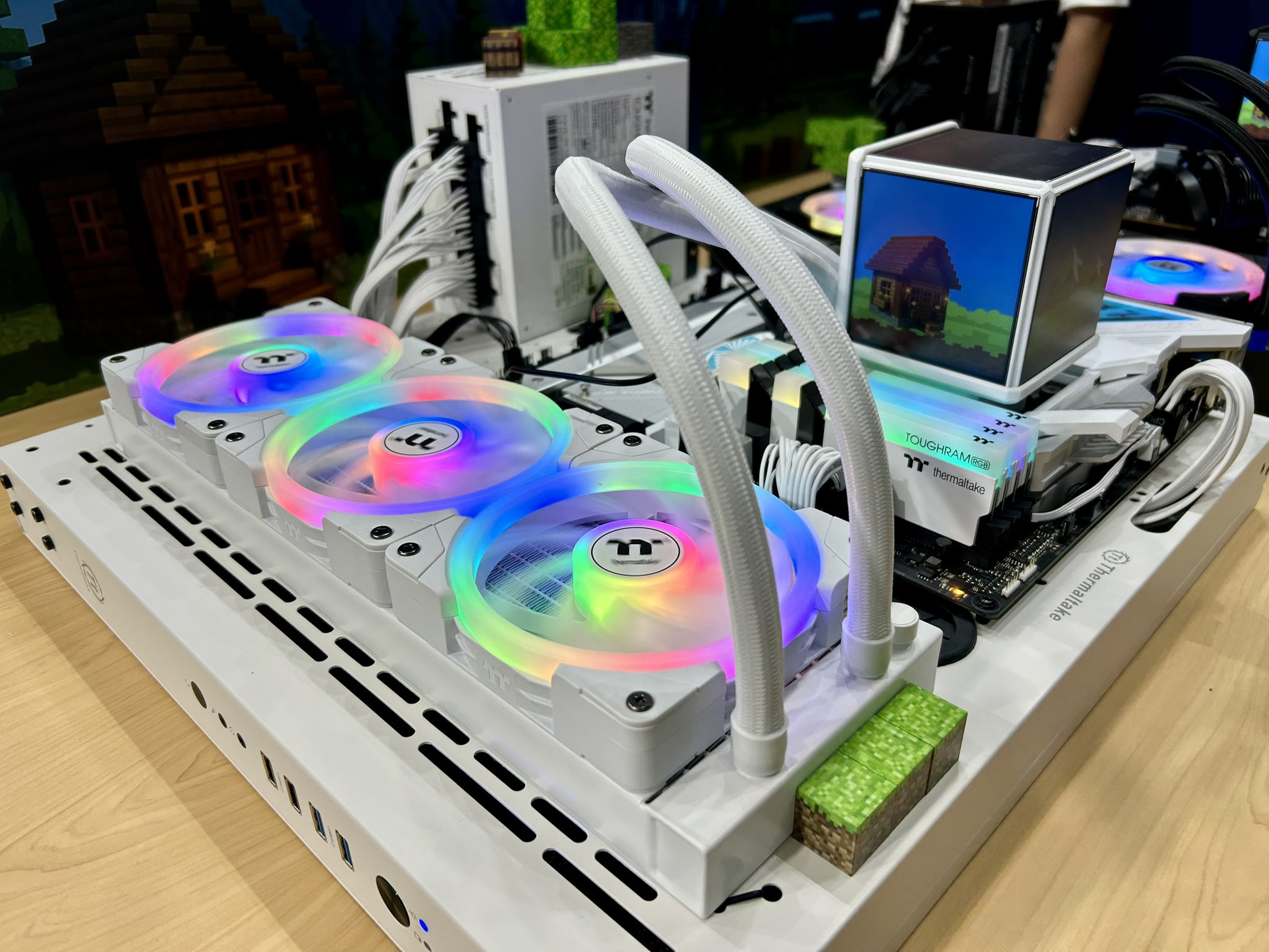 正如其名称所显示的,MINECUBE 360 Ultra ARGB Sync 的设计灵感明显源于《我的世界》中的方块,其冷头的顶、前、左、右四个表面均配备了一块 3.95 英寸的 720×720 分辨率方屏。