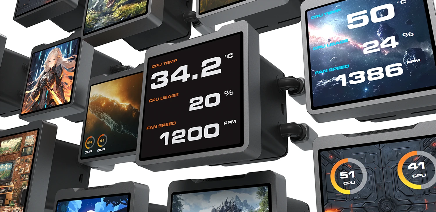 骨伽同时也介绍了 Poseidon Vistek Pro 一体式水冷散热器,该水冷将配备 3.95 英寸 720×720 分辨率 60Hz 刷新率 IPS TFT LCD 冷头屏和一体式 Vistek Pro 风扇。