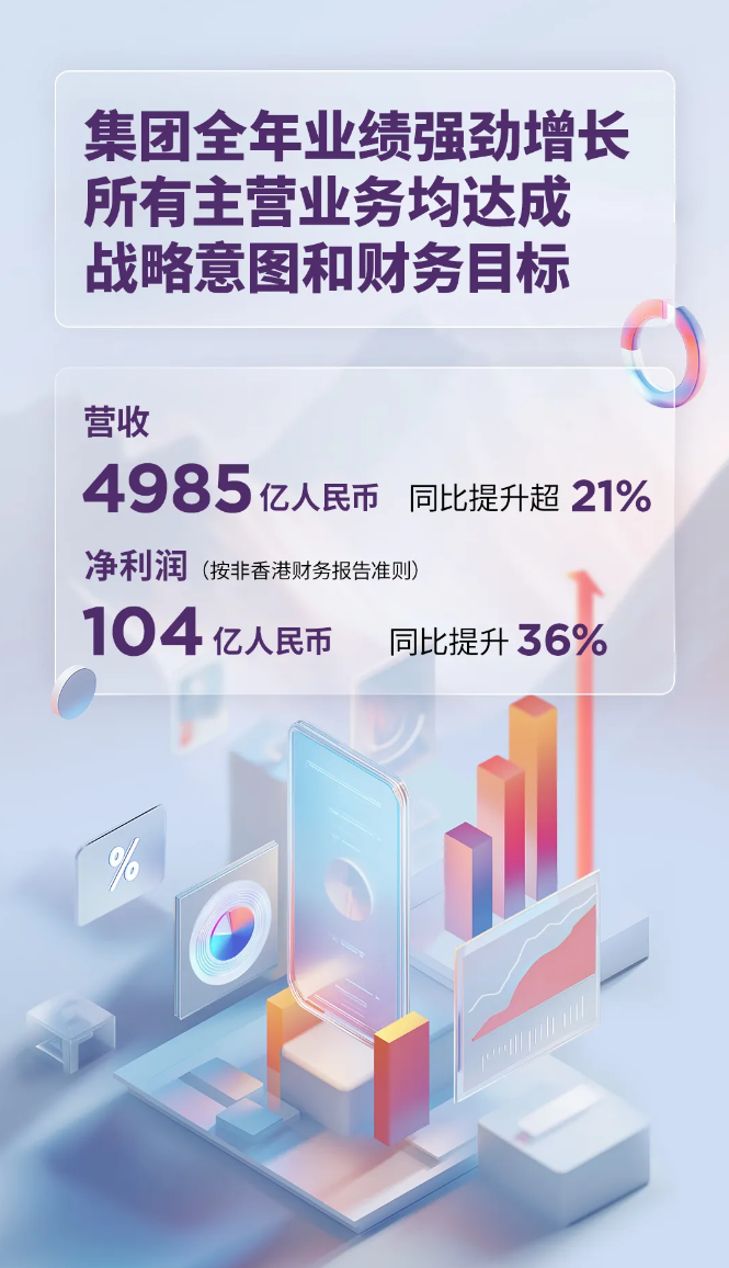 IT之家 5 月 22 日消息,联想集团今日公布 2024/25 财年全年及第四季度业绩:全年收入 4985 亿元人民币,同比增长 21.5%,创历史第二高位。非香港财务报告准则下的净利润同比大增 36%,达 104 亿元人民币。