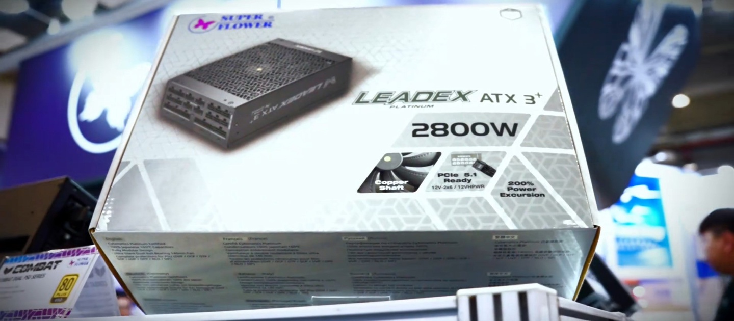 这款型号为 SP-3300F14HP 3.1 的电源获得 Cybenetics 白金转换效率认证,符合 ATX 3.1 和 PCIe CEM 5.1 规范,100% 配备日系电容,超越海韵和鑫谷的两款产品成为目前已知的展会现场最高功率 ATX 电源;功率低一档的 2800W 白金牌款式也在现场出现。
