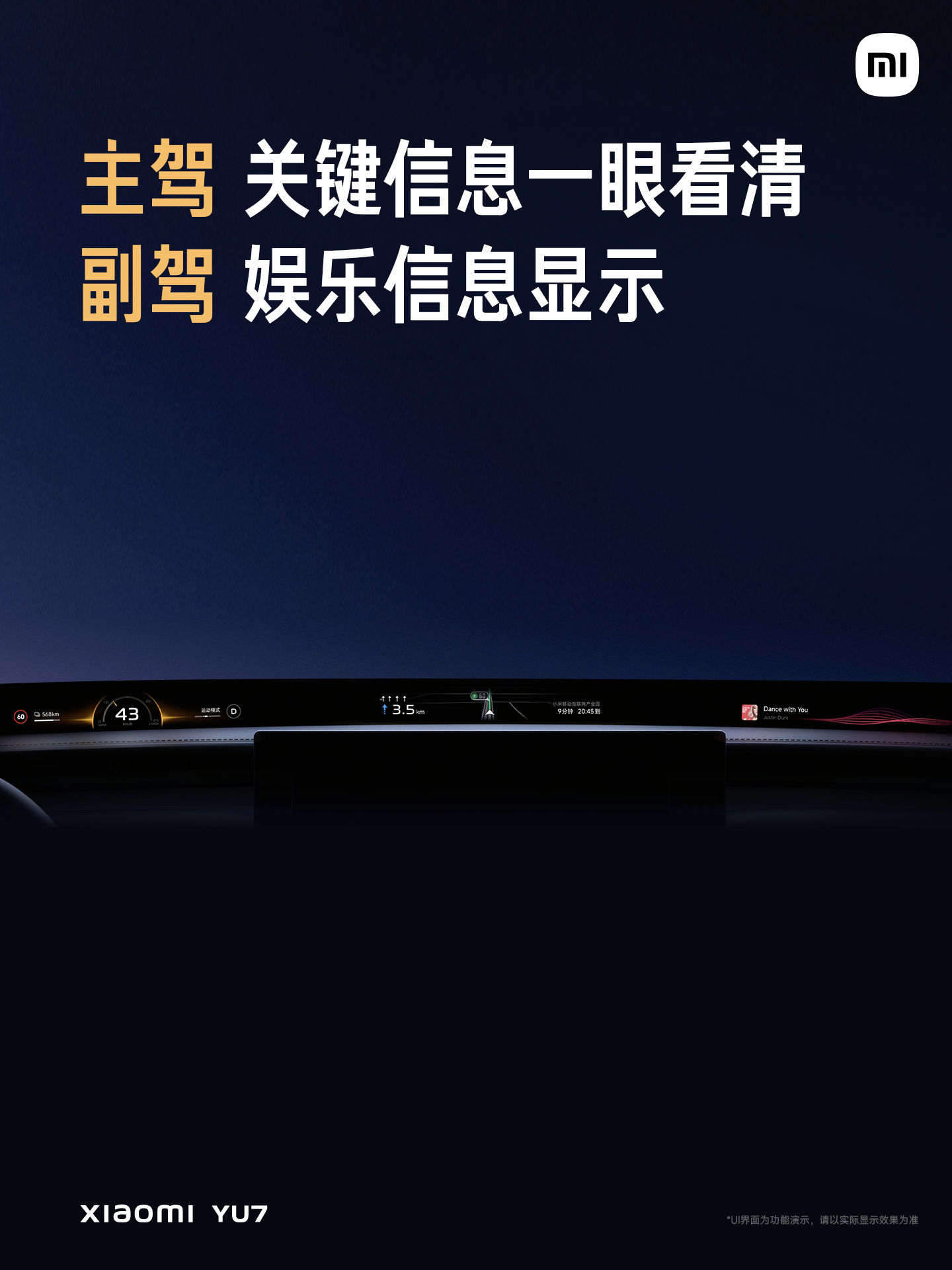 IT之家 5 月 22 日消息,在今晚的发布会上,雷军揭晓了小米 YU7 的内饰布局。新车在中控台位置配备了一块“天际屏”,支持全景显示,可带来更智能、更符合直觉的交互。