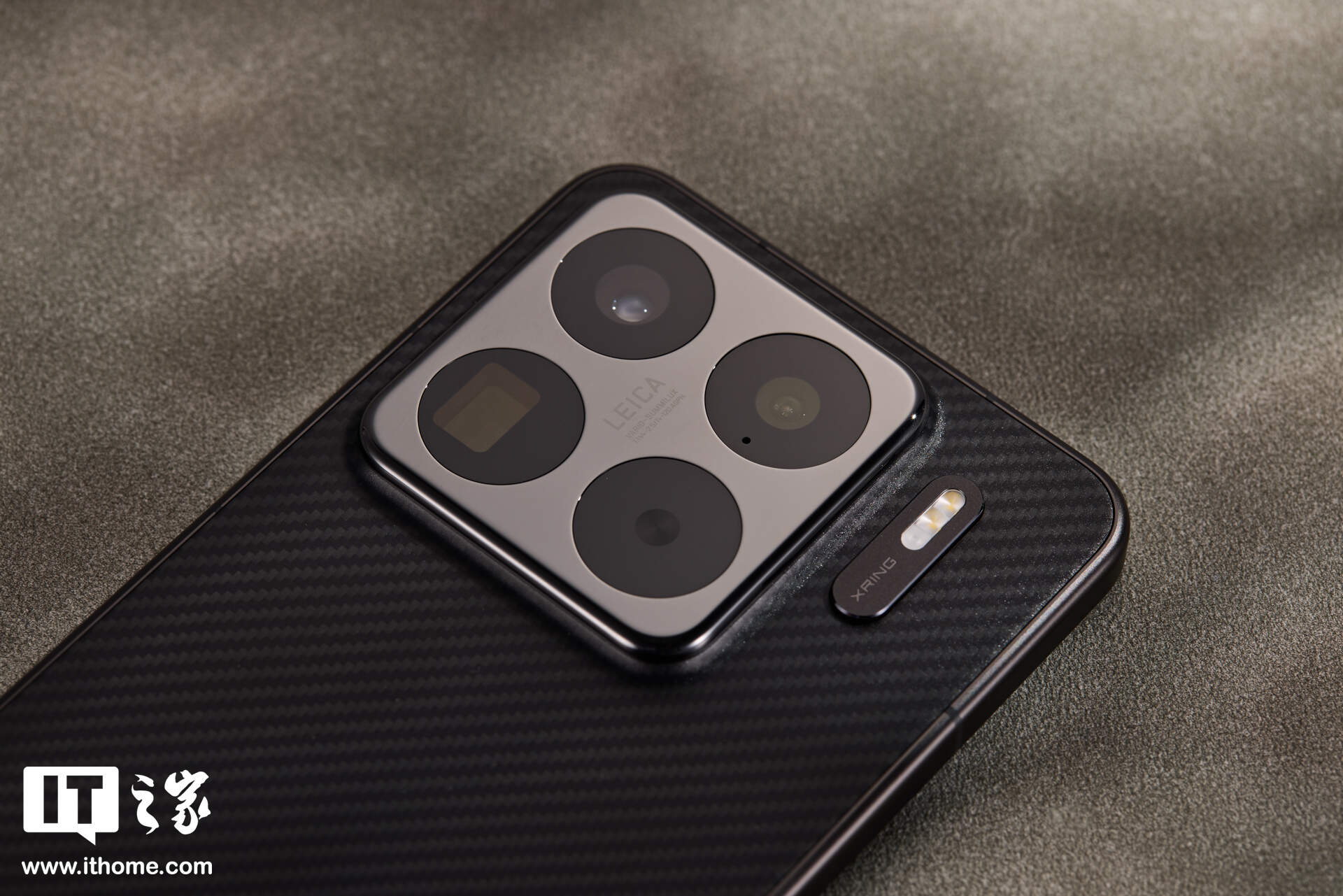 为了彰显身份,小米 15S Pro 闪光灯侧边增加「XRING」自研芯片标识,由 0.23mm 钻石刀 CNC 精雕打造,喷砂工艺打造哑光质感,阳极氧化工艺染色与中框统一设计语言。