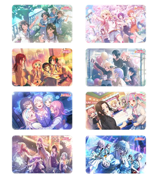 除了周年纪念系列卡面外,《BanG Dream! 少女乐团派对!》还将同步推出【乐队纪念系列卡面】,收录包括 MyGO!!!!! 在内的 8 支乐队合影卡面。
