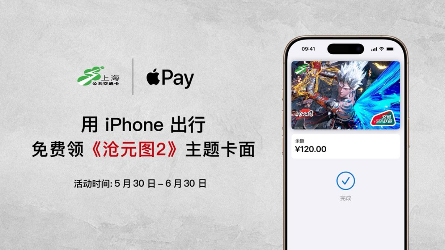 同上,苹果用户 6 月 30 日前可以通过北京一卡通、上海公共交通卡、岭南通、深圳通、南京市民卡、智慧苏州、常州行、西安市民卡、潇湘⼀卡通、宁波市民卡、大连明珠卡、琴岛通的卡面商城频道免费领取国漫《沧元图 2》神魔决战专属电子卡面。