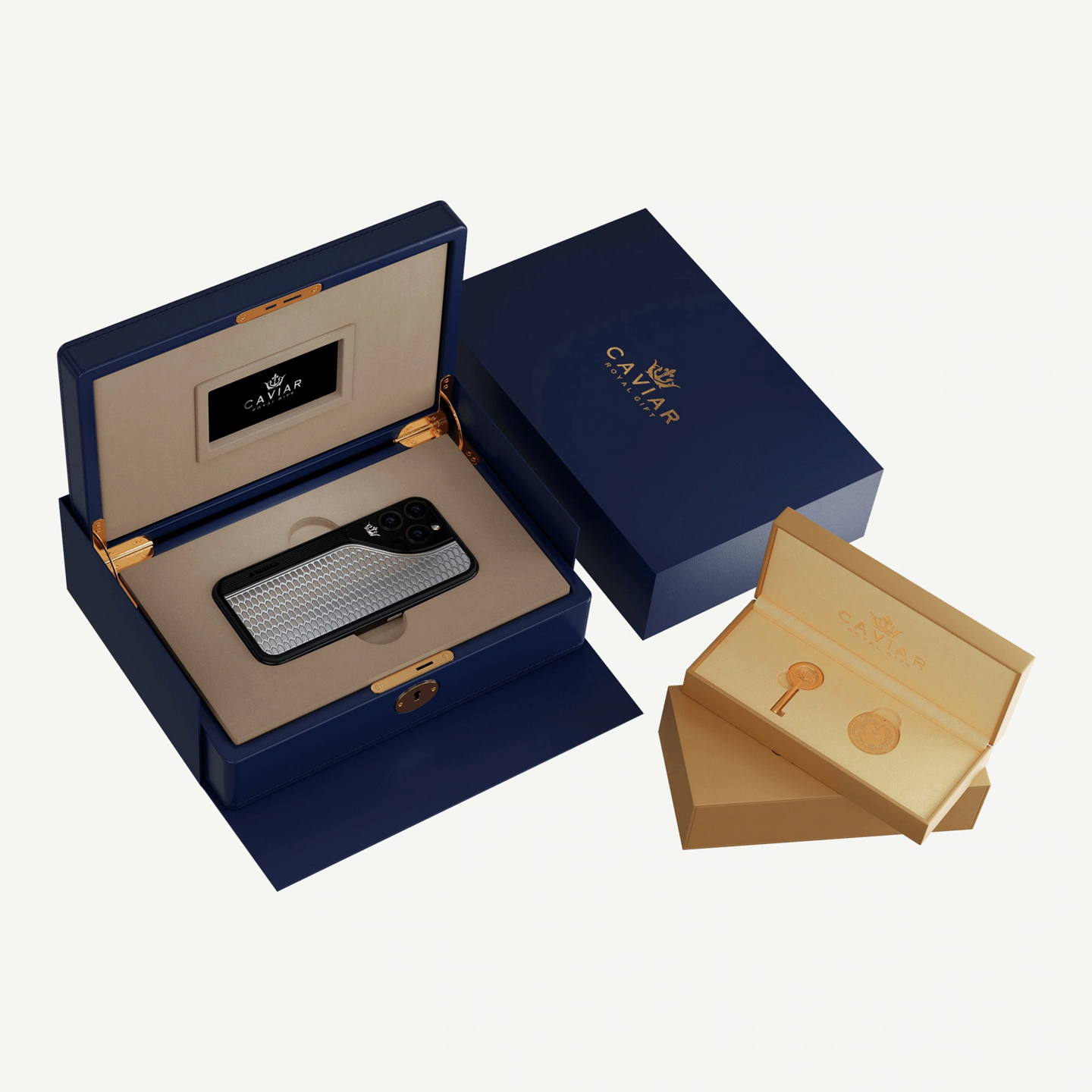 该系列共包含 Nightwing、Tapisserie、Hexagon 和 Sky Filigree 四款型号,每款均致敬瑞士名表经典风格。Caviar 表示,这些手机均采用 PVD 涂层钛金属框架和珠宝级 24 克拉金背板,手工雕刻细节。