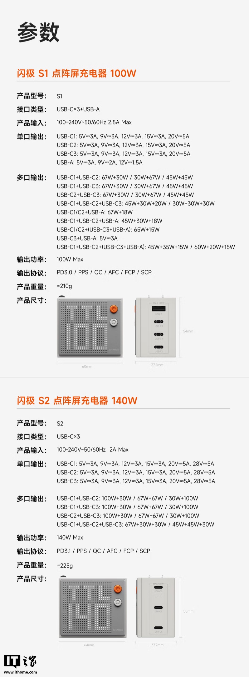 IT之家附充电头规格和功率如下: