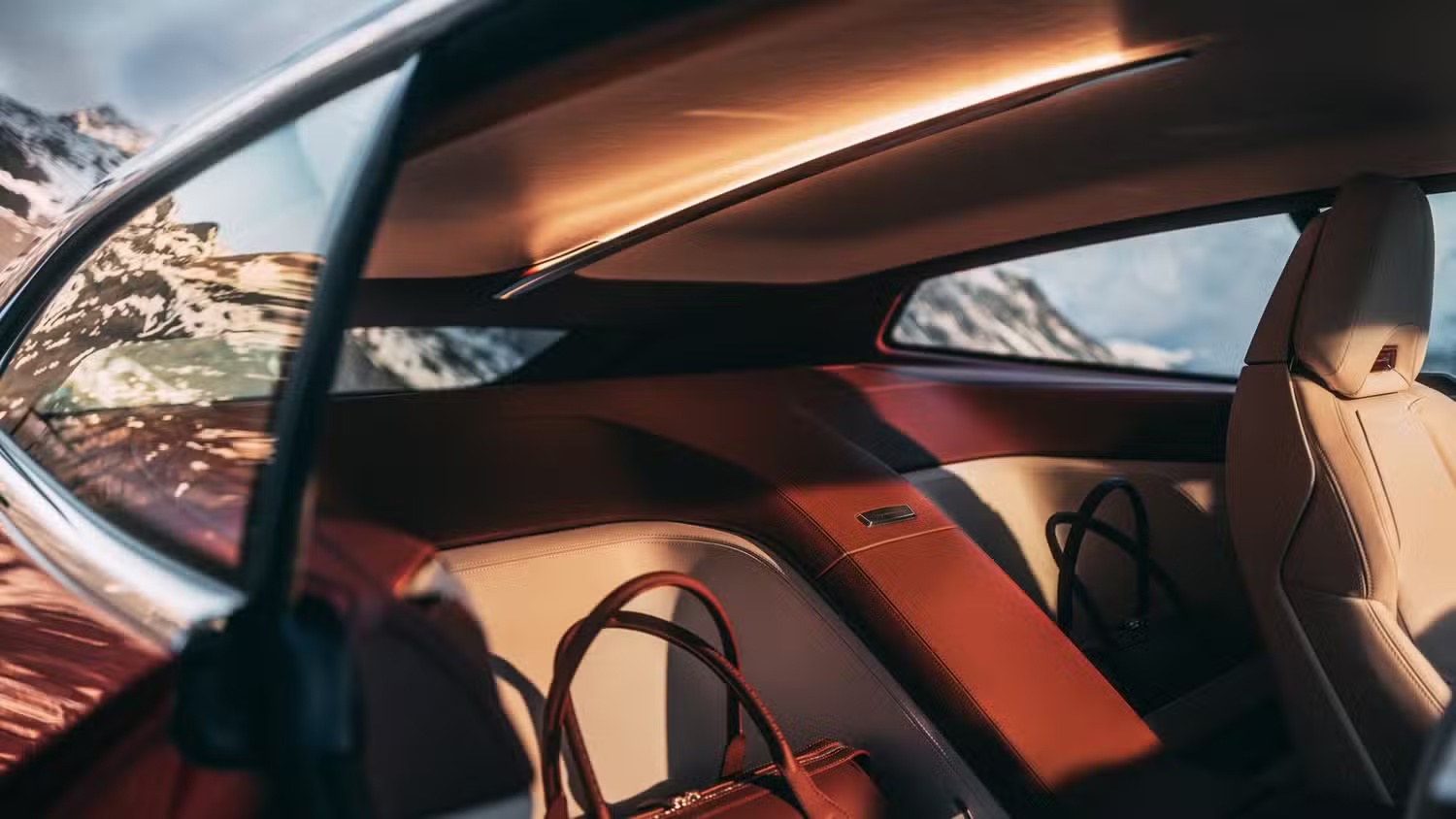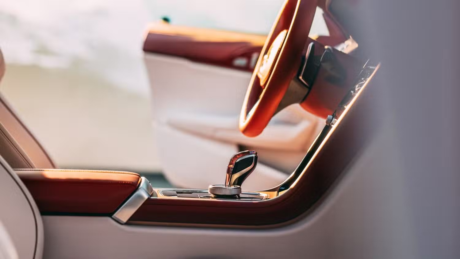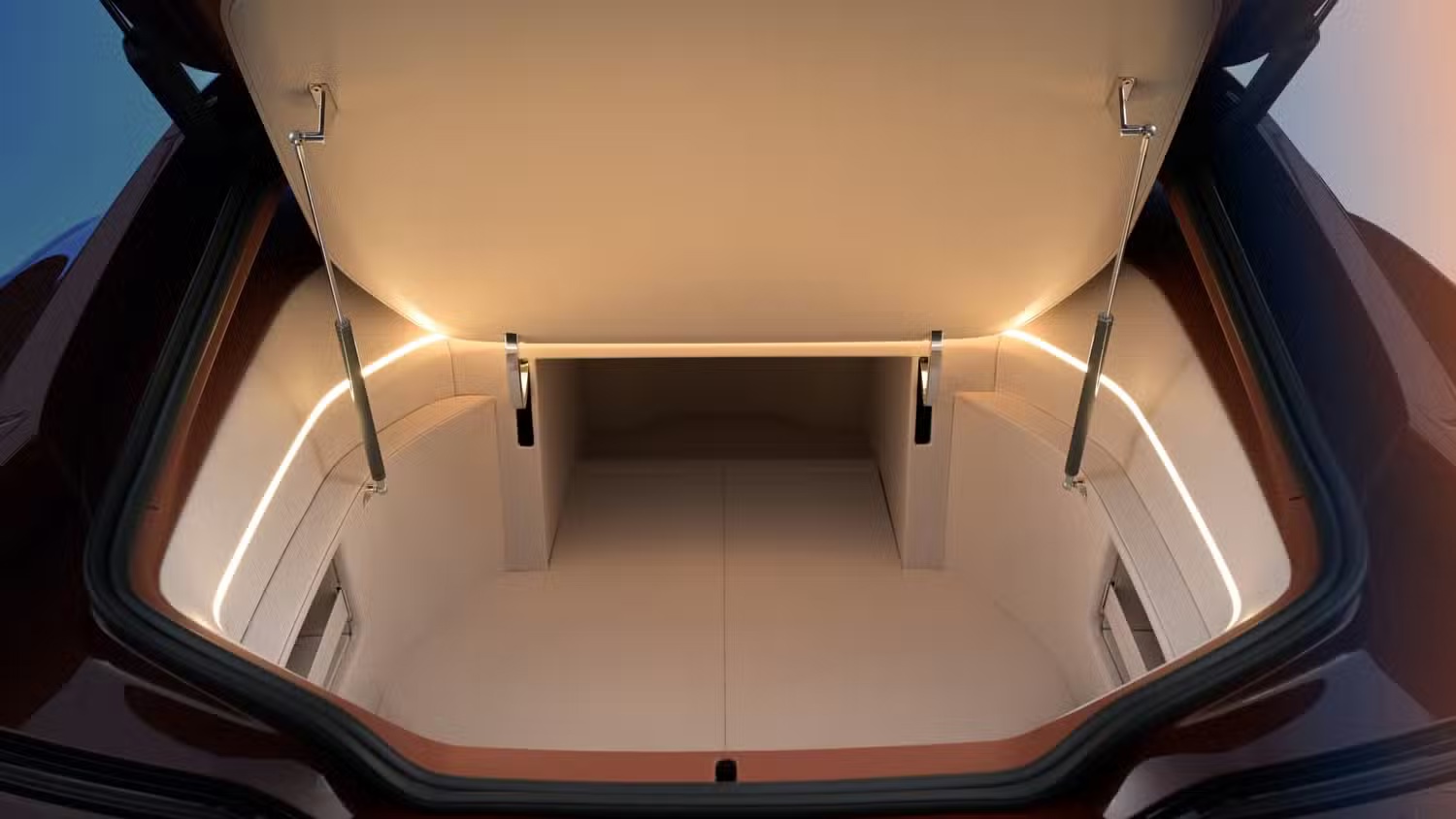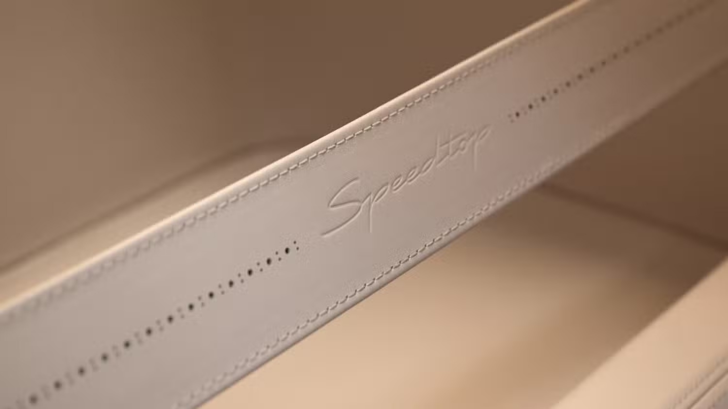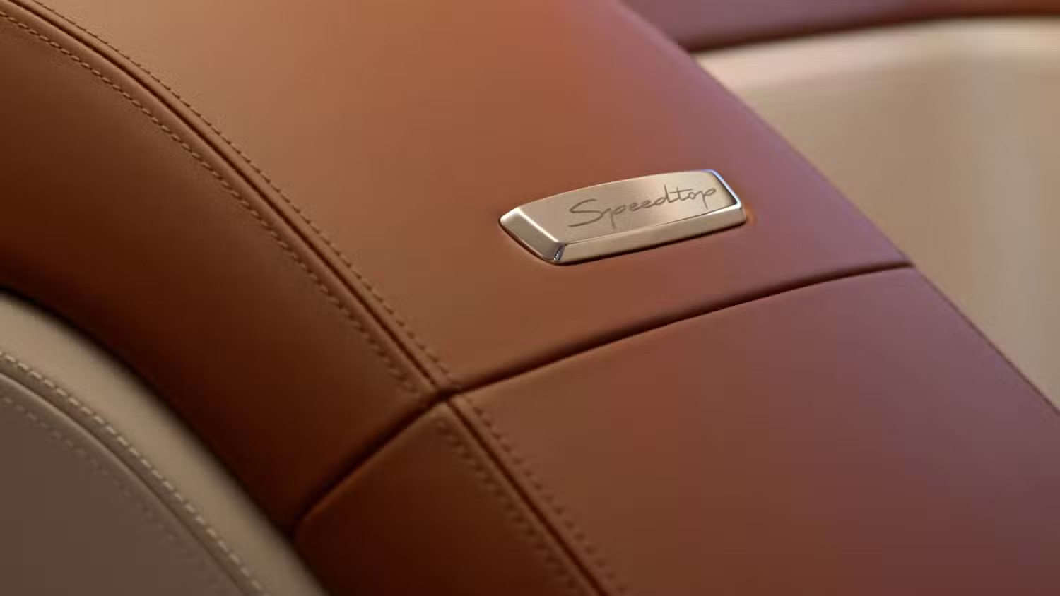内饰方面,Speedtop 内饰配色呼应外观,仪表板、窗台和行李架采用 Sundown Maroon 皮革,而座椅、门板和中控台下部则覆盖 Moonstone White 皮革。
