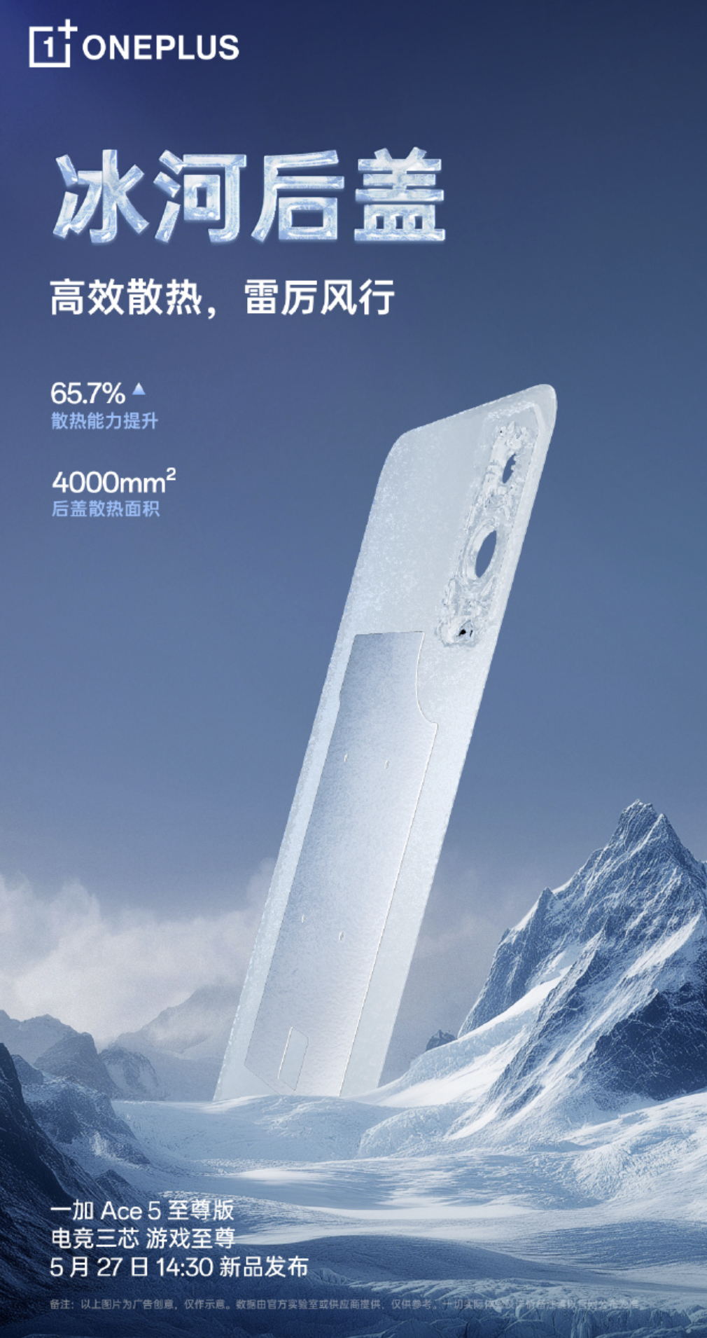 另参考官方此前预热,一加 Ace5 至尊版将搭载天玑 9400 + 处理器,顶配版将提供 16GB RAM 和 1TB 存储空间,手机内置全新“冰河散热系统”,提供 7300 mm² VC 散热面积和 4000 mm² 后盖散热面积,号称主流游戏可实现连玩 5 小时以上持续满帧。
