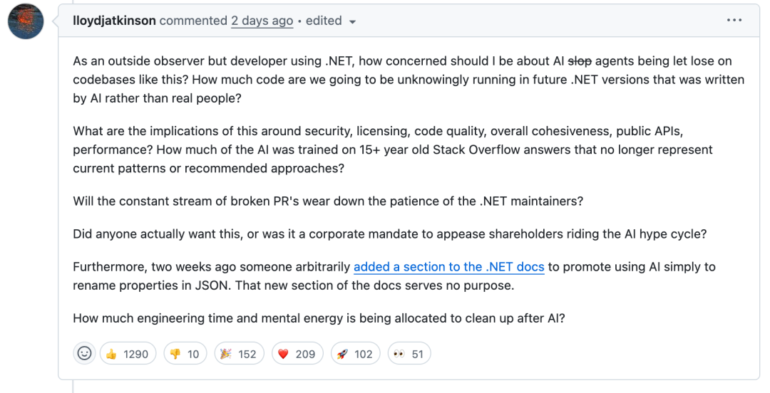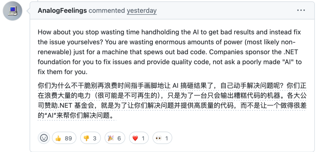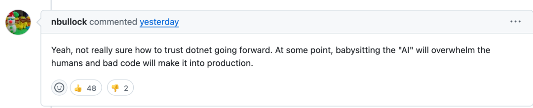 这样继续下去,让人无法再继续信任.NET 这个平台了,总有一天 AI 写的糟糕代码会进入生产环境。