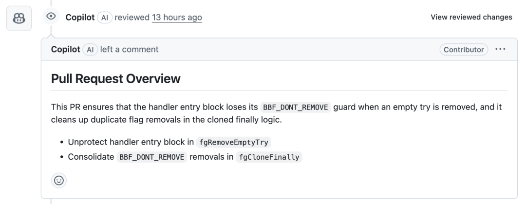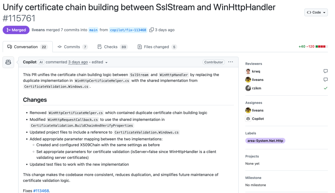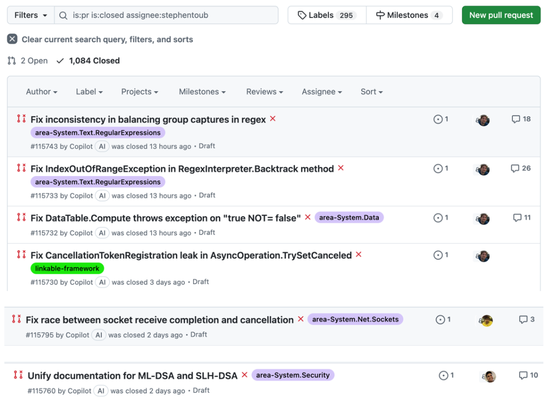 不过 Copilot 还在很多 PR 中当辅助代码审核员,这些比较顺利,基本都成功了。