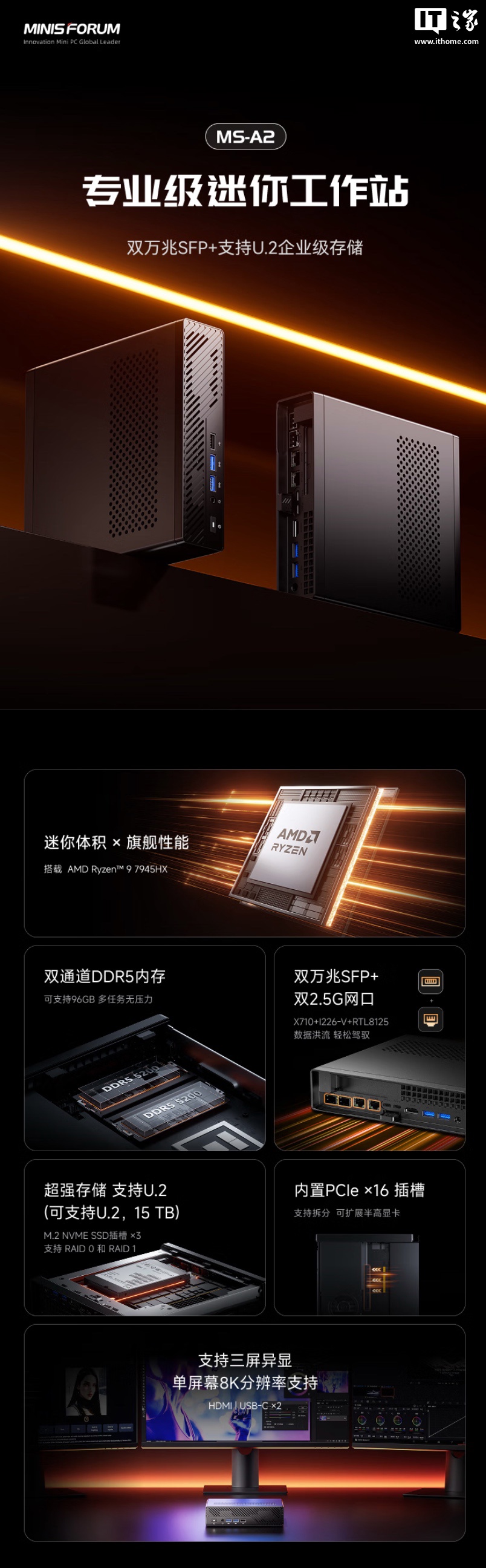 IT之家 5 月 24 日消息,铭凡旗下 MS-A2 迷你主机国行现已在京东开售,该机暂时仅可选锐龙 9 7945HX 处理器,提供多种存储搭配,IT之家整理价格如下: