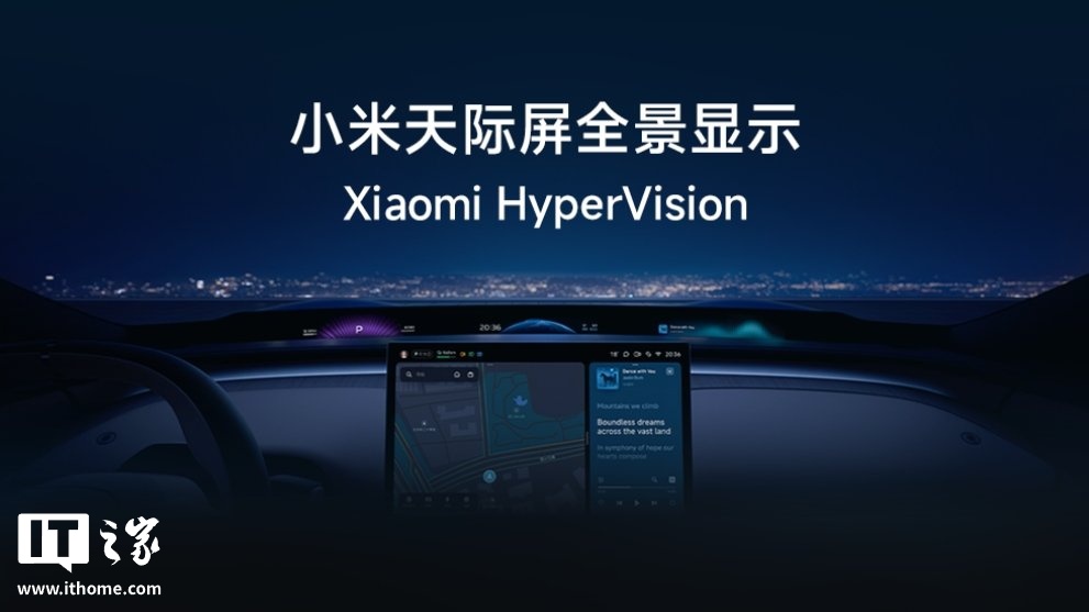 观感更震撼:小米天际屏全景显示由三块 Mini LED 屏幕组合而成,将信息直接反射到前风挡下黑区,形成 1.1m 超宽全景显示,相比传统 HUD 的显示区域更宽。