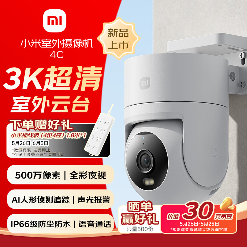 IT之家 5 月 26 日消息,小米室外摄像机 4C 今日开售,全新升级 500 万像素镜头(f/1.6 光圈),支持 3K 超清画质,售价 199 元。