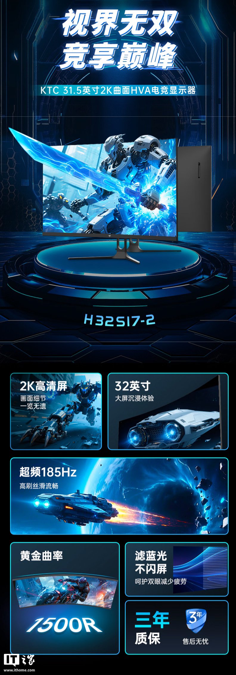 IT之家 5 月 26 日消息,KTC 旗下“H32S17-2”的 31.5 英寸显示器将于今天晚上 8 点在京东开启首销,这款显示器主打“2K 185Hz”,标准价 1399 元,(首销期间)首发价 1199 元。