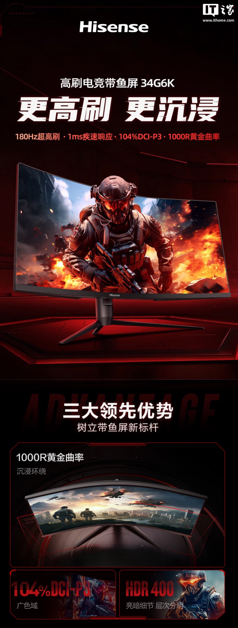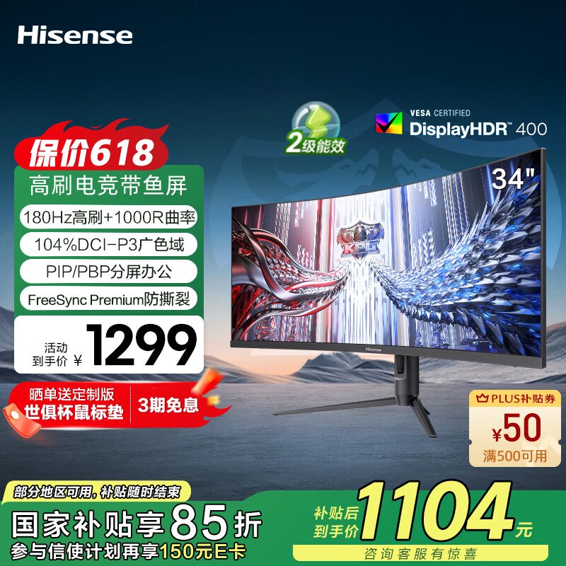 IT之家 5 月 26 日消息,海信旗下型号为“34G6K”的 34 英寸带鱼屏显示器目前在京东迎来优惠,该显示器主打“1440P 180Hz VA 面板”,原价 1299 元,满 6-5 元后叠加 PLUS 会员 500 元-50 元券,同时参与 8.5 折国补,京东站外晒单获 150 元 E 卡,到手低至 907.4 元。