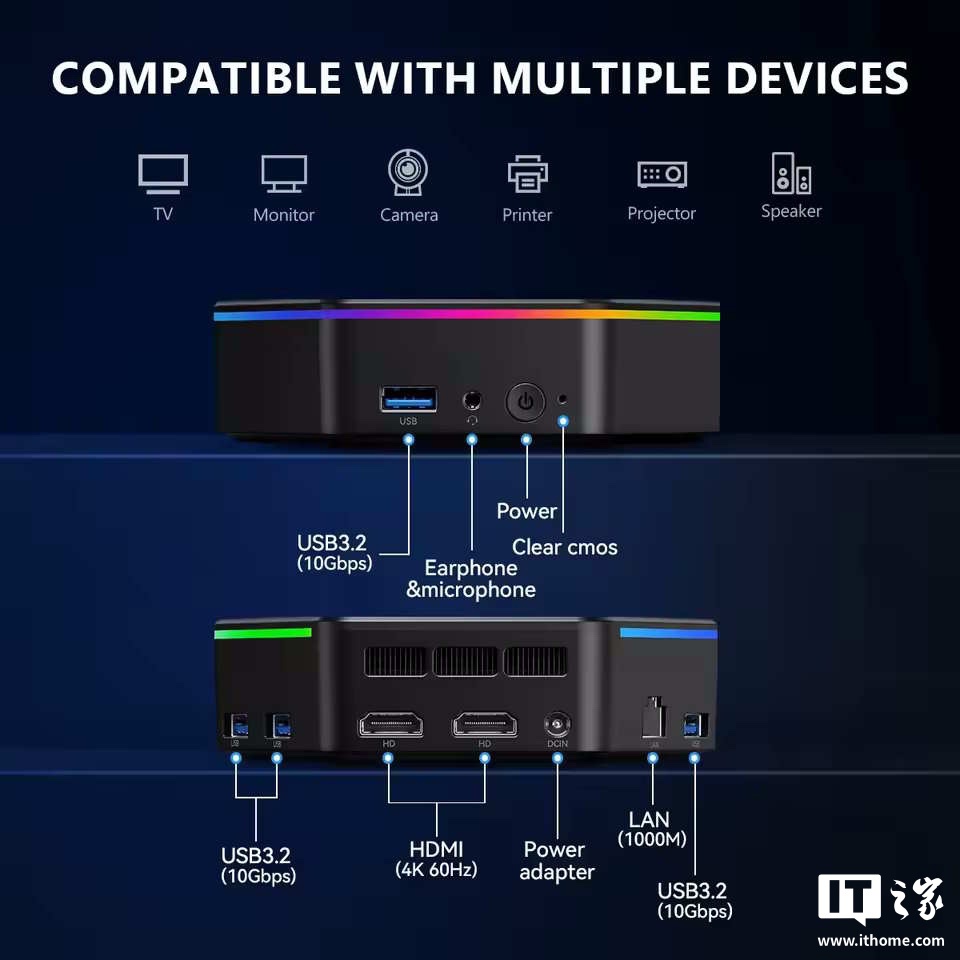 IT之家 5 月 26 日消息,深圳厂商 SZBox 推出迷你电脑 N6,采用独特六边形设计并配有 RGB 灯带,搭载英特尔 N150 处理器,支持最高 16GB 内存和 1TB 硬盘,全球速卖通 AliExpress 平台起售价 173 美元(IT之家注:现汇率约合 1242 元人民币)。