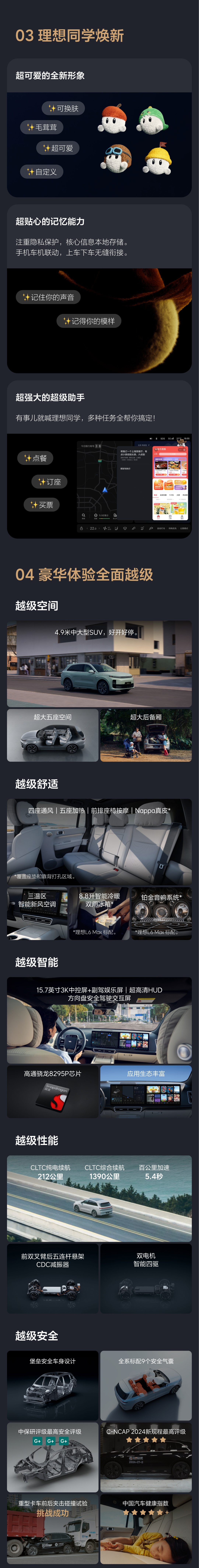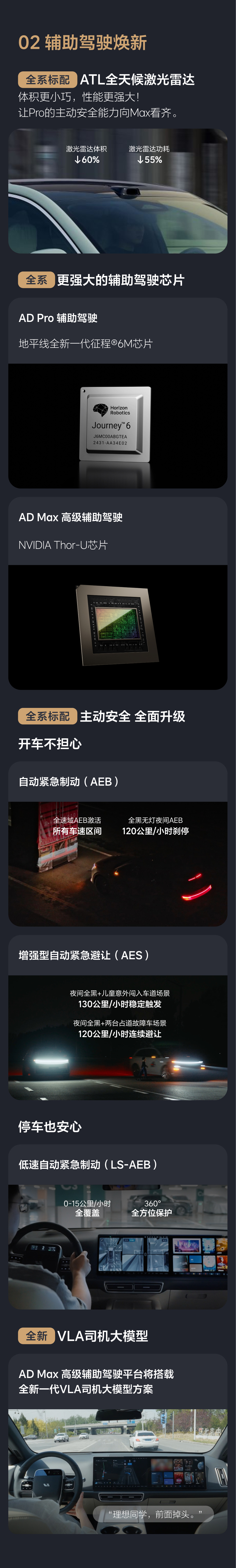 据IT之家此前报道,在 5 月 8 日晚的理想汽车智能焕新版发布会中,理想 L6 智能焕新版正式发布。新车增加了天青色特别版珍珠漆及黑棕双色内饰,同时全系标配 ATL 全天候激光雷达,体积更小、性能更强;全系标配更强辅助驾驶芯片,AD Pro 采用地平线全新一代征程 6M 芯片、AD Max 采用英伟达 Thor-U 芯片。