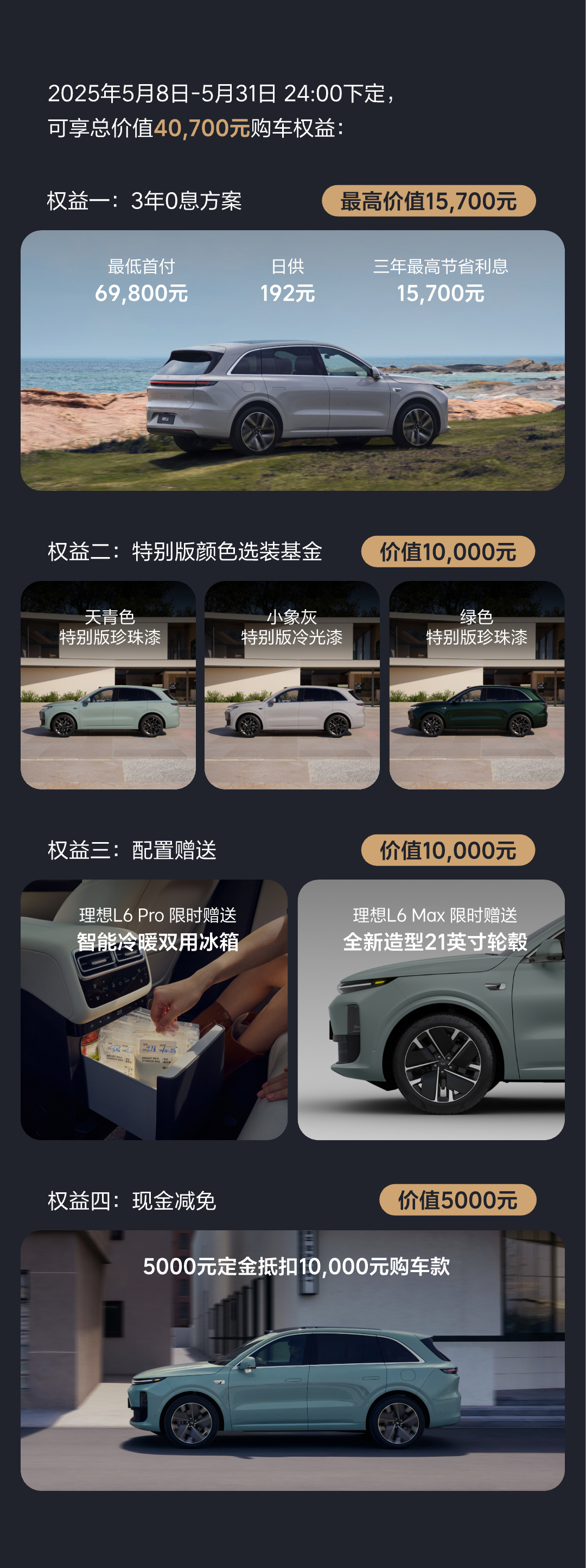 IT之家 5 月 26 日消息,理想汽车产品线负责人李昕旸今日宣布:理想 L6 智能焕新版汽车累计交付超 10,000 台,平均两分钟交付一台。