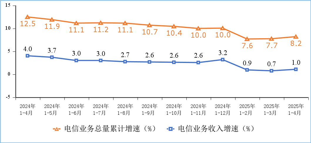 IT之家 5 月 27 日消息,工业和信息化部运行监测协调局数据显示,今年前 4 个月,我国通信业运行稳中有升。电信业务量收增速小幅回升,移动互联网接入流量保持较快增长,5G、千兆光网、物联网等新型信息基础设施建设稳步推进。电信业务收入累计完成 5985 亿元,同比增长 1%。按照上年不变价计算的电信业务总量同比增长 8.2%,增速较一季度回升 0.5 个百分点。