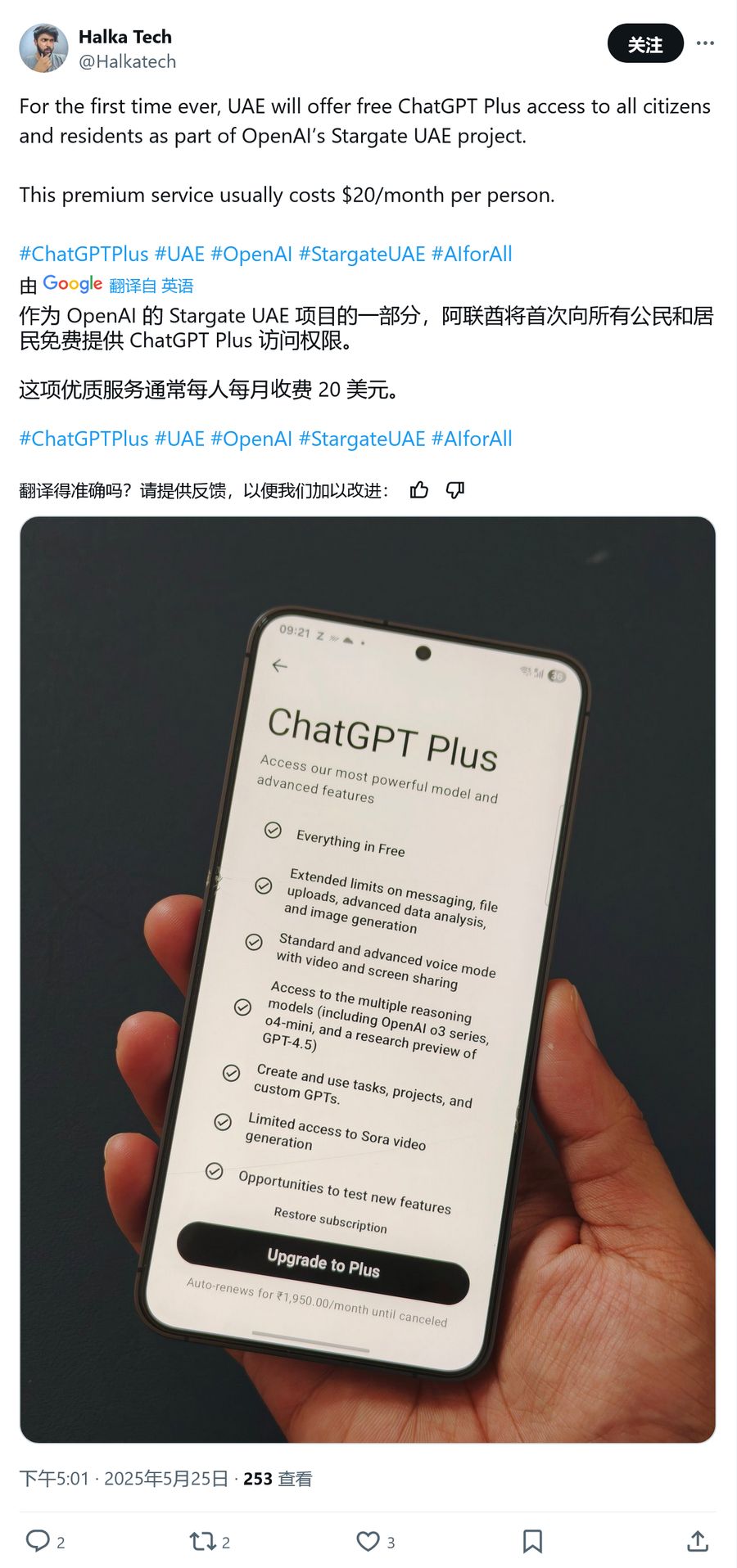 而作为“星际之门阿联酋”项目的一项福利措施,阿联酋所有公民和居民都可以免费获得 ChatGPT Plus 服务,而该服务目前的月费为 20 美元。