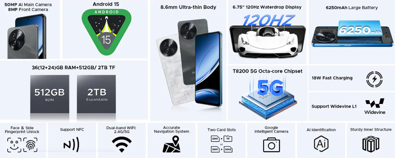 产品内置 12GB 内存、512GB 存储(支持 MicroSD 卡扩展最多 2TB),预装 Android 15 操作系统,但官方未明确承诺后续更新支持。