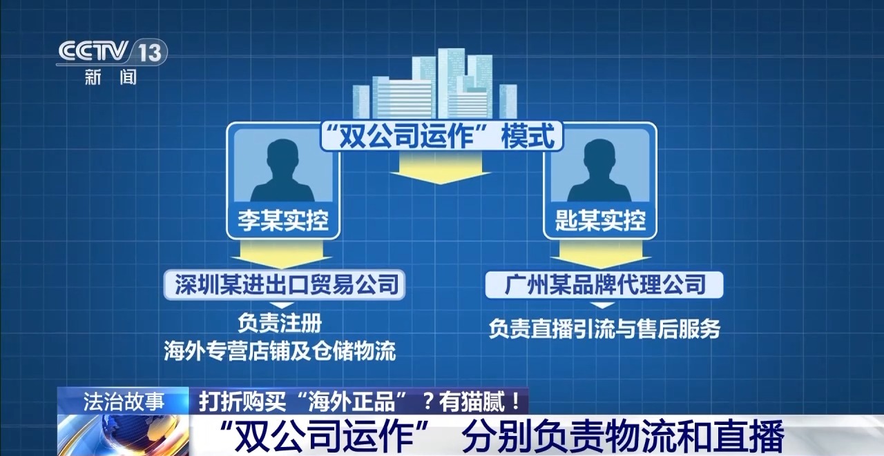每次关店,匙某和李某就会改头换面重新注册店铺,继续进行销售。不仅如此,警方还发现,这家贸易公司采用“双公司运作”模式:由李某实控的深圳某进出口贸易公司,负责注册海外专营店铺及仓储物流,匙某实控的广州某品牌代理公司,负责直播引流与售后服务。