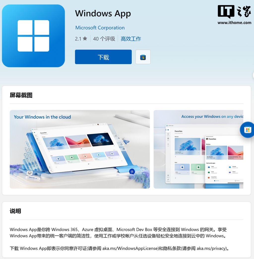 IT之家 5 月 27 日消息,微软将于明天在 Windows 10、Windows 11 的应用商店中下架“Microsoft 远程桌面”应用,此前苹果 Mac App Store 中的 Micorosoft 远程桌面应用已被更新为 Windows App。