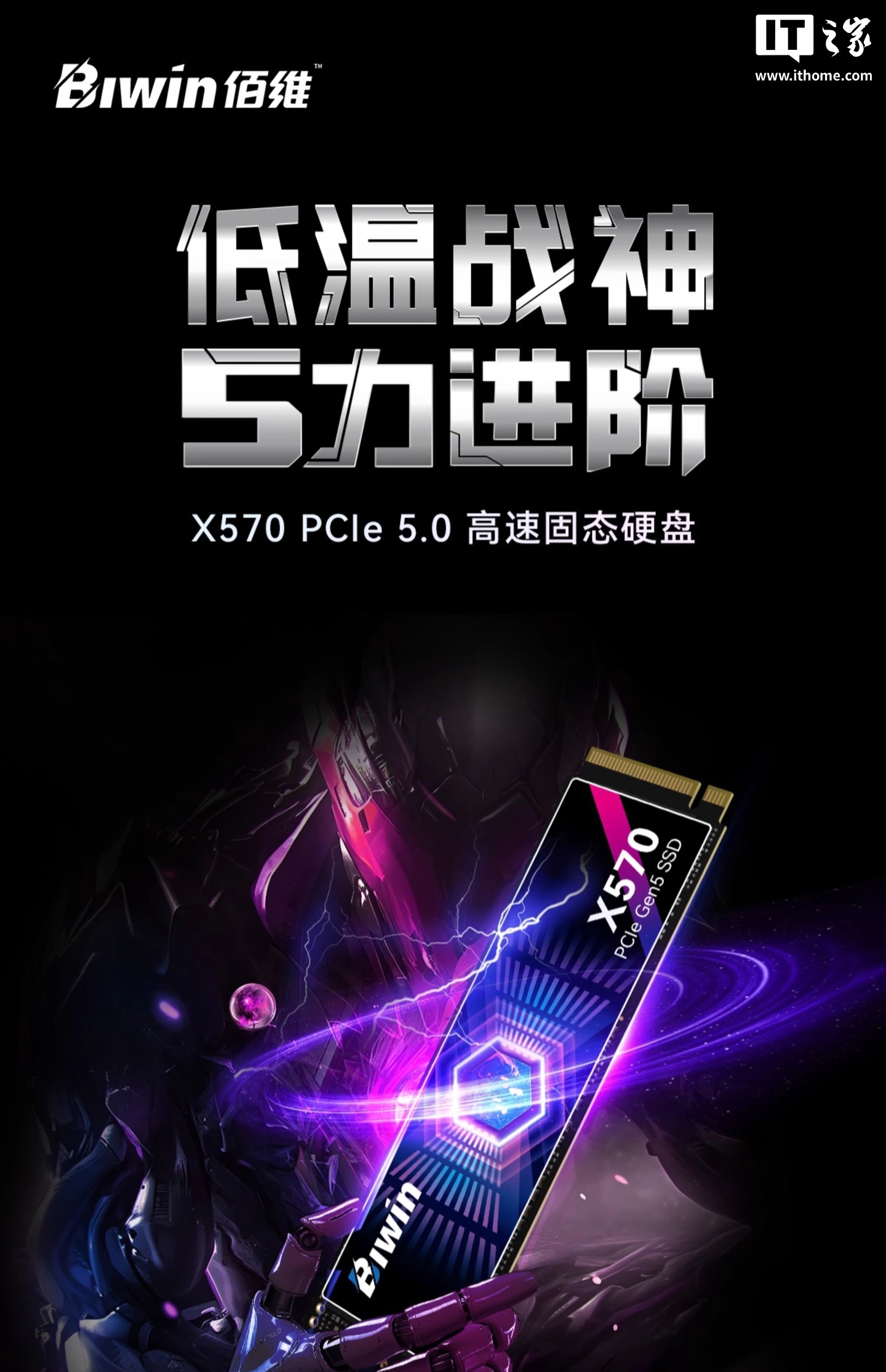 IT之家获悉,佰维 X570 固态硬盘基于 3D TLC NAND 闪存颗粒,采用单面 PCB 设计,使用 PCIe 5.0×4 总线接口,符合 NVMe 2.0 规范,内置智能温控与电源管理系统,除台式机外也兼容轻薄本甚至掌机。