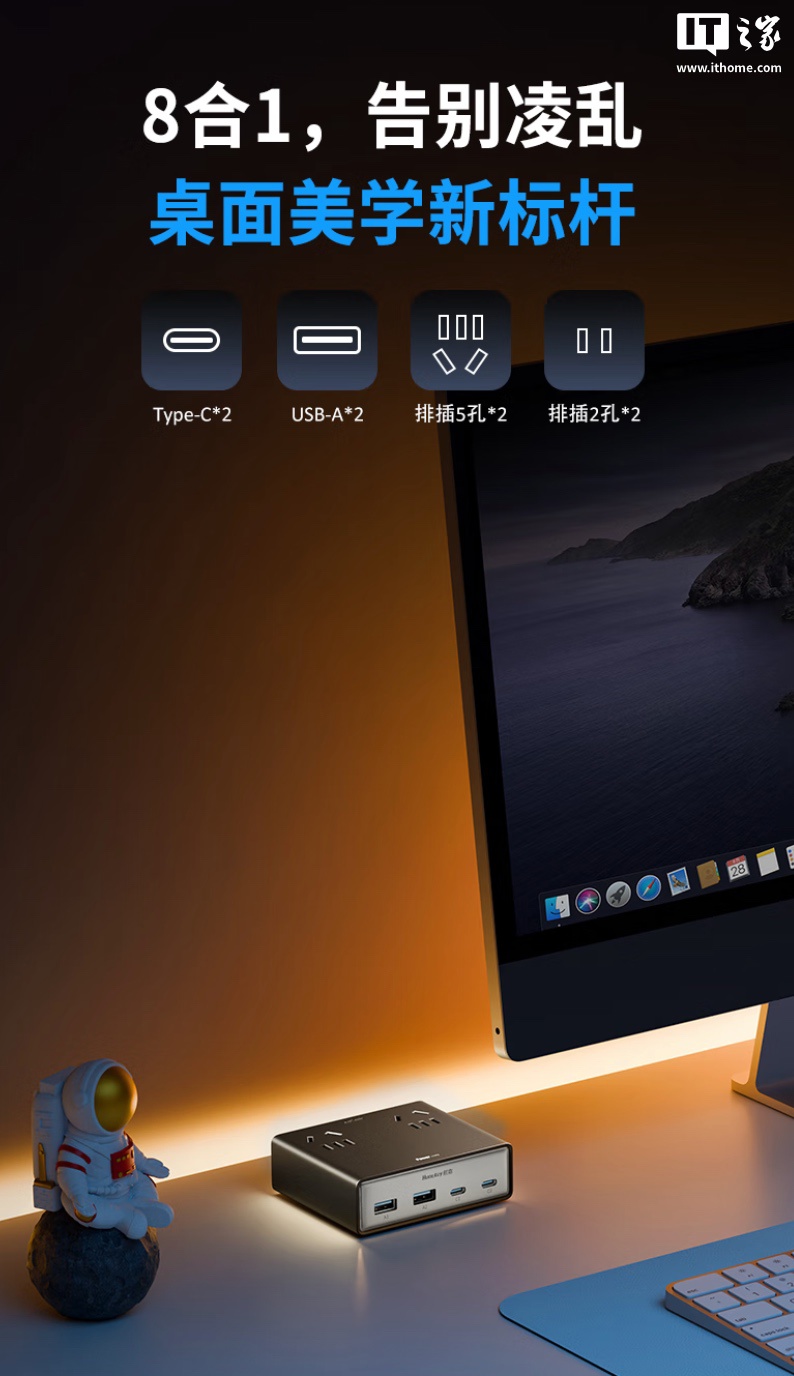 其中,桌充 USB-C 接口支持 UFCS、QC3+、FCP、SCP、AFC、MTK PE+、MTK PE+2.0、PD3.0、PPS、QC4+、DCP、Apple 2.4A 等充电协议;USB-A 接口支持 MTK PE+、MTK PE+2.0、DCP、Apple 2.4A 充电协议。