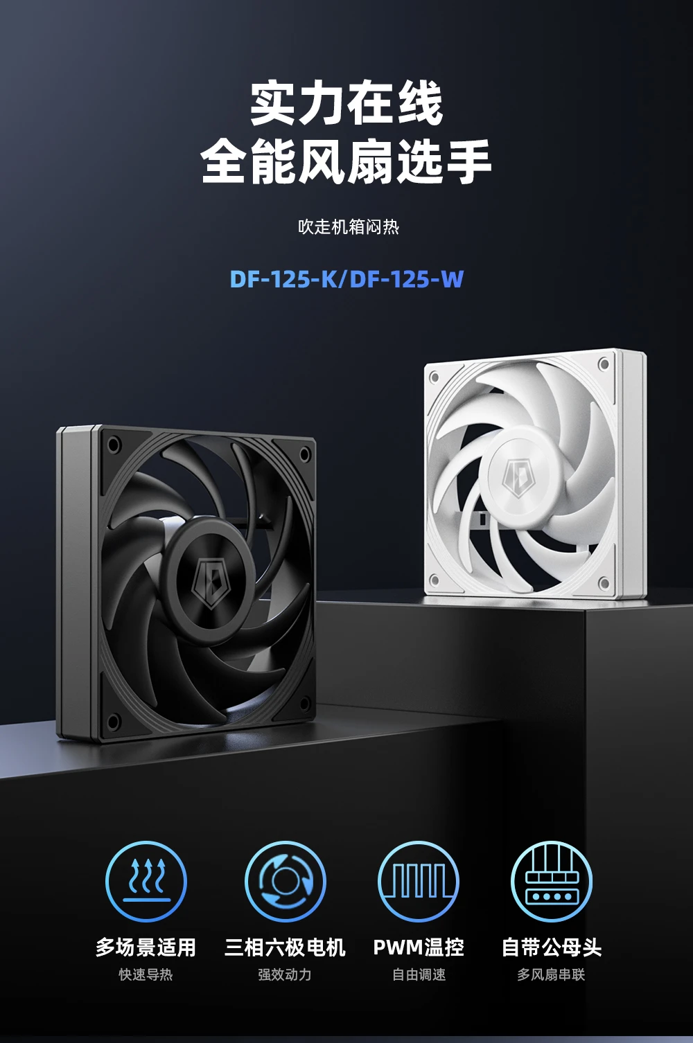 IT之家 5 月 28 日消息,酷凛 ID-COOLING 的 DF-125 系列风扇已于本周一上市。该系列产品采用标准 12025 外形规格,包含黑色的 DF-125-K 和白色的 DF-125-W 两个变体版本,标价均为 45 元。