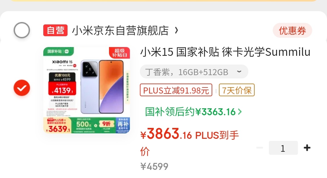 PLUS 会员立减 91.98 元;