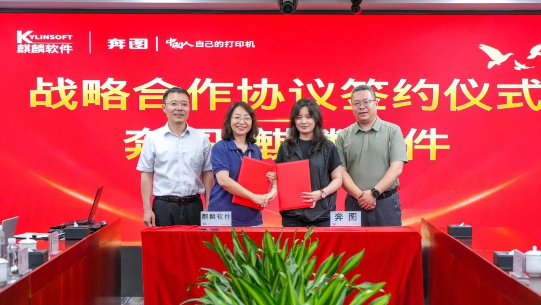 IT之家 5 月 29 日消息,珠海奔图电子有限公司(以下简称“奔图”)与麒麟软件有限公司(以下简称“麒麟软件”)战略合作签约仪式于 5 月 27 日在京举行。麒麟软件表示,此次签约标志着双方战略合作关系从兼容适配走向市场与技术深度融合的全面升级。