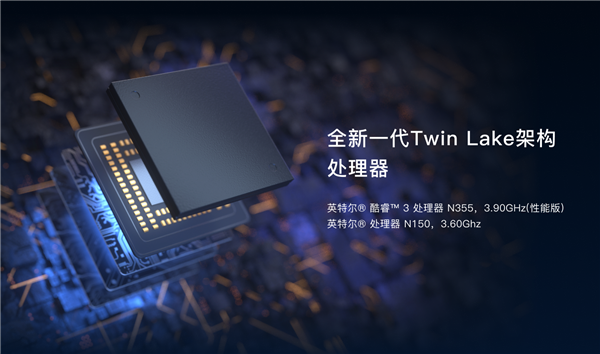 该机搭载了全新一代英特尔 Twin Lake 架构 N150 / N355(性能版)处理器,最高主频可达 3.6GHz / 3.9GHz;升级冰川降温新架构,采用智能温控双风扇、静音热管散热器、相变散热片,实现系统级全局散热降温。