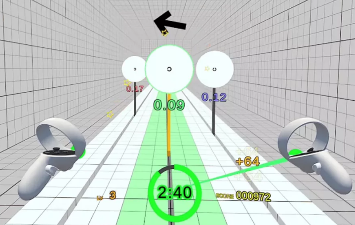 这款 VR 游戏旨在锻炼眼部,玩家需要在不同距离的靶子之间切换视线,同时专注于 Landolt C 以找到缺口。游戏结束后,玩家会看到一个街机风格的得分屏幕,显示他们的命中数、未命中数和连击数,以及是否打破了新纪录。