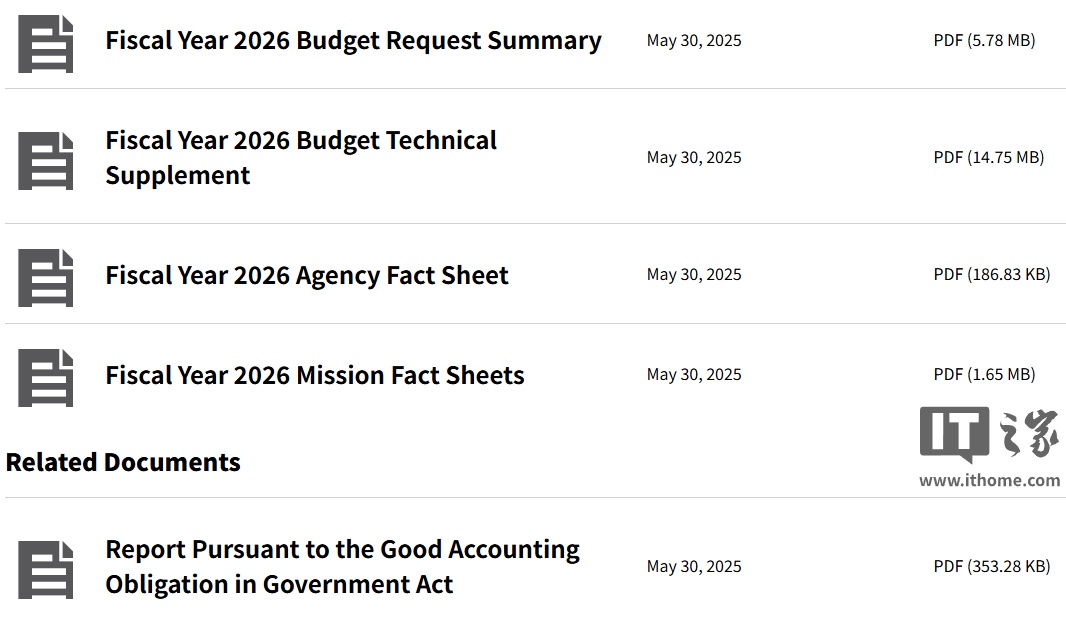 IT之家 5 月 31 日消息,美国政府本月初发布了 2026 财年“精简预算”提案,提议将 NASA 预算从 248 亿美元削减至 188 亿美元,降幅近 25%,其中科学项目经费削减占比最大。