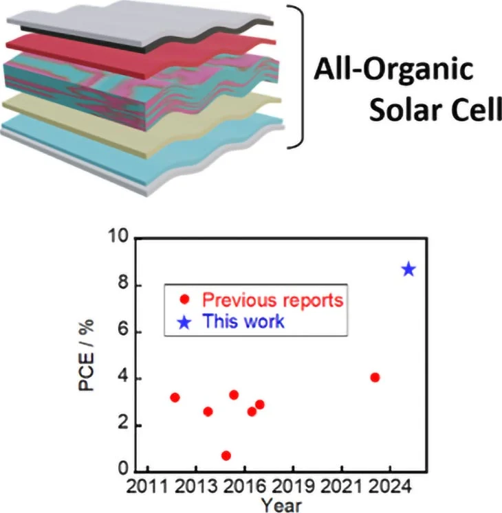IT之家 5 月 31 日消息,科技媒体 scitechdaily 昨日(5 月 30 日)发布博文,报道称科学家成功研发出一种更安全、高效的全有机太阳能电池(All-Organic Solar Cells,AOSCs),通过新型电极和层压技术,将能量转换效率(PCE)提升至 8.7%,是传统方案(约 4%)的两倍多。